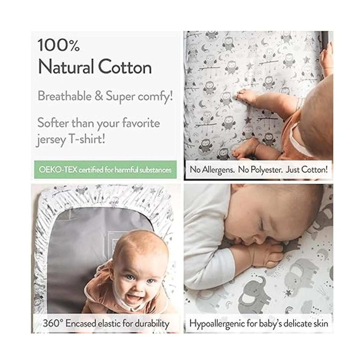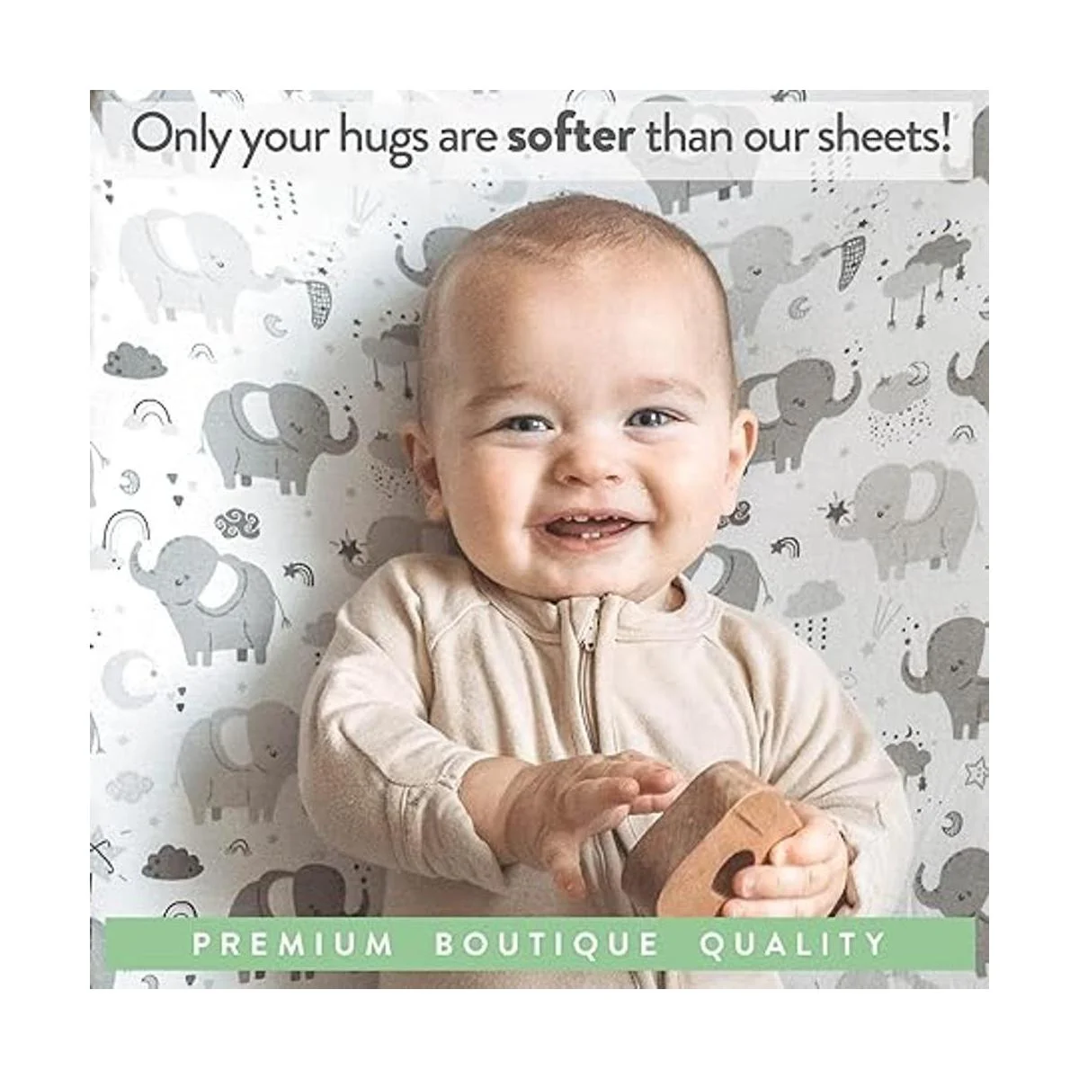 Tan suave: solo tus abrazos son más suaves que nuestras sábanas bajeras. Hechas de 100 algodón de jersey en diseños inspiradores de SERENITY, estas son las sábanas de cama de primera calidad para obtener si valoras las sábanas de bebé que mantienen su suavidad, elasticidad y patrón adorable a través de cada lavado. Lavar a máquina, secar en secadora