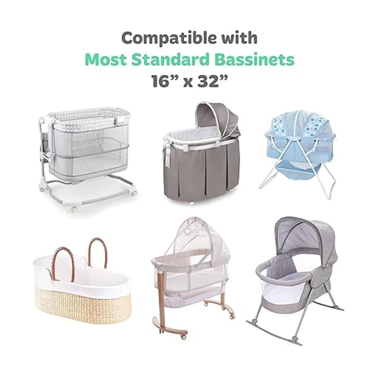 Ajuste personalizado perfecto: fácil de poner y no se desliza: cada sábana de cuna Joey Joan se adapta a modelos específicos, por lo que se deslizan fácilmente en el colchón de tu bebé, sin preocuparte de que se deslicen accidentalmente sobre la cabeza del bebé. Estas sábanas bajeras de moisés son compatibles con Ingenuity Dream Grow, Badger Basket Wishes Oval, Safety 1st Nap and Go Moisés y Big Oshi de 16 x 32 pulgadas