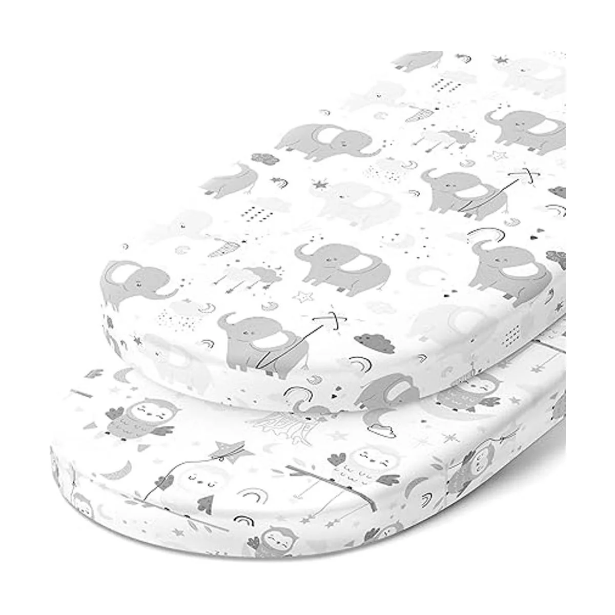Sábanas bajeras de moisés para colchón ovalado de 16 x 32 pulgadas, para bebés y niñas, compatibles con moisés UPPABaby Vista 2, 100 algodón de jersey, paquete de 2