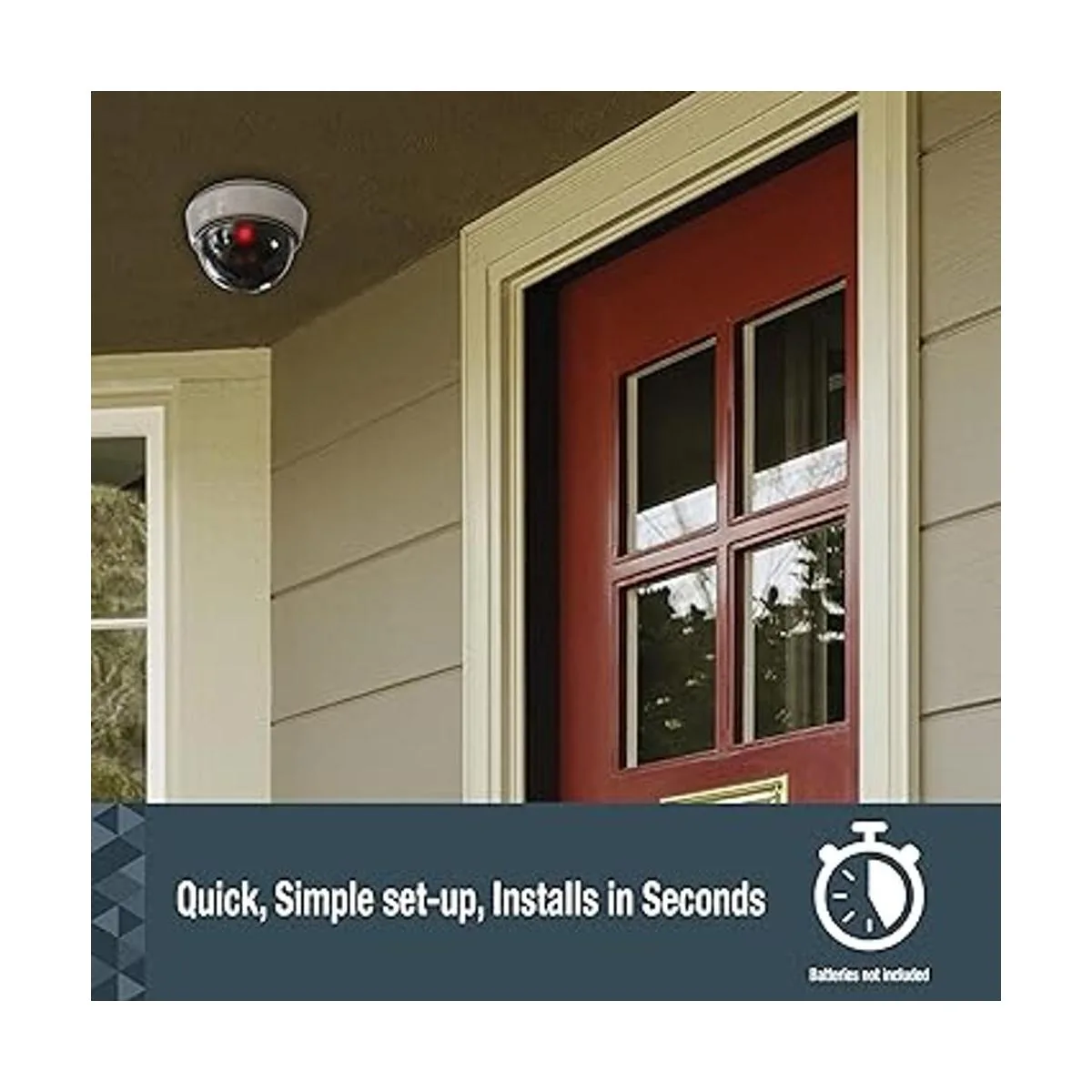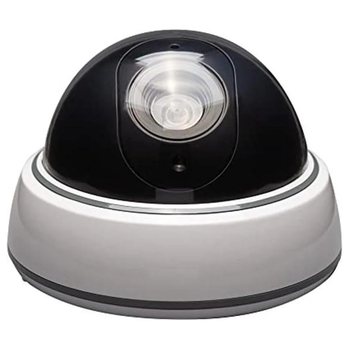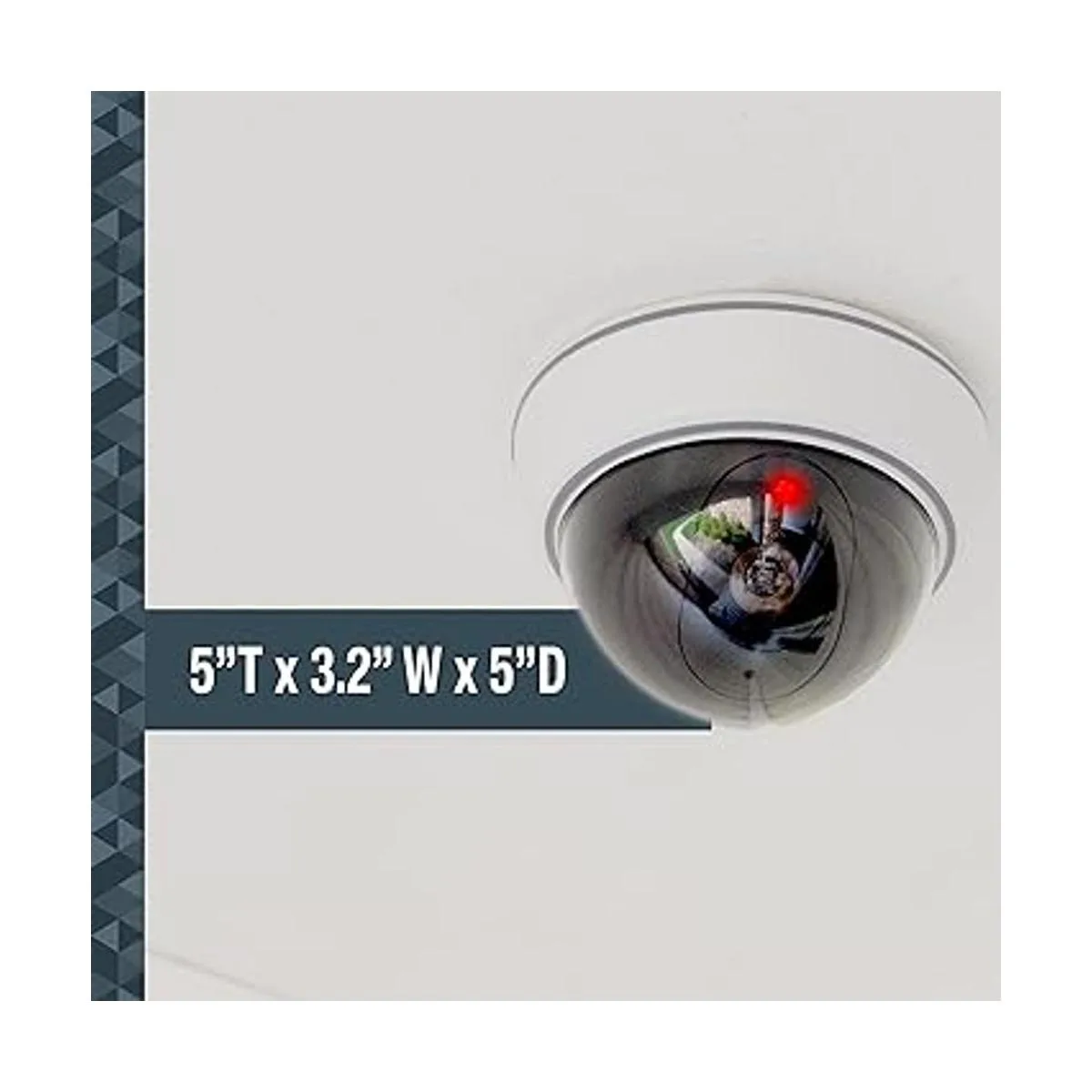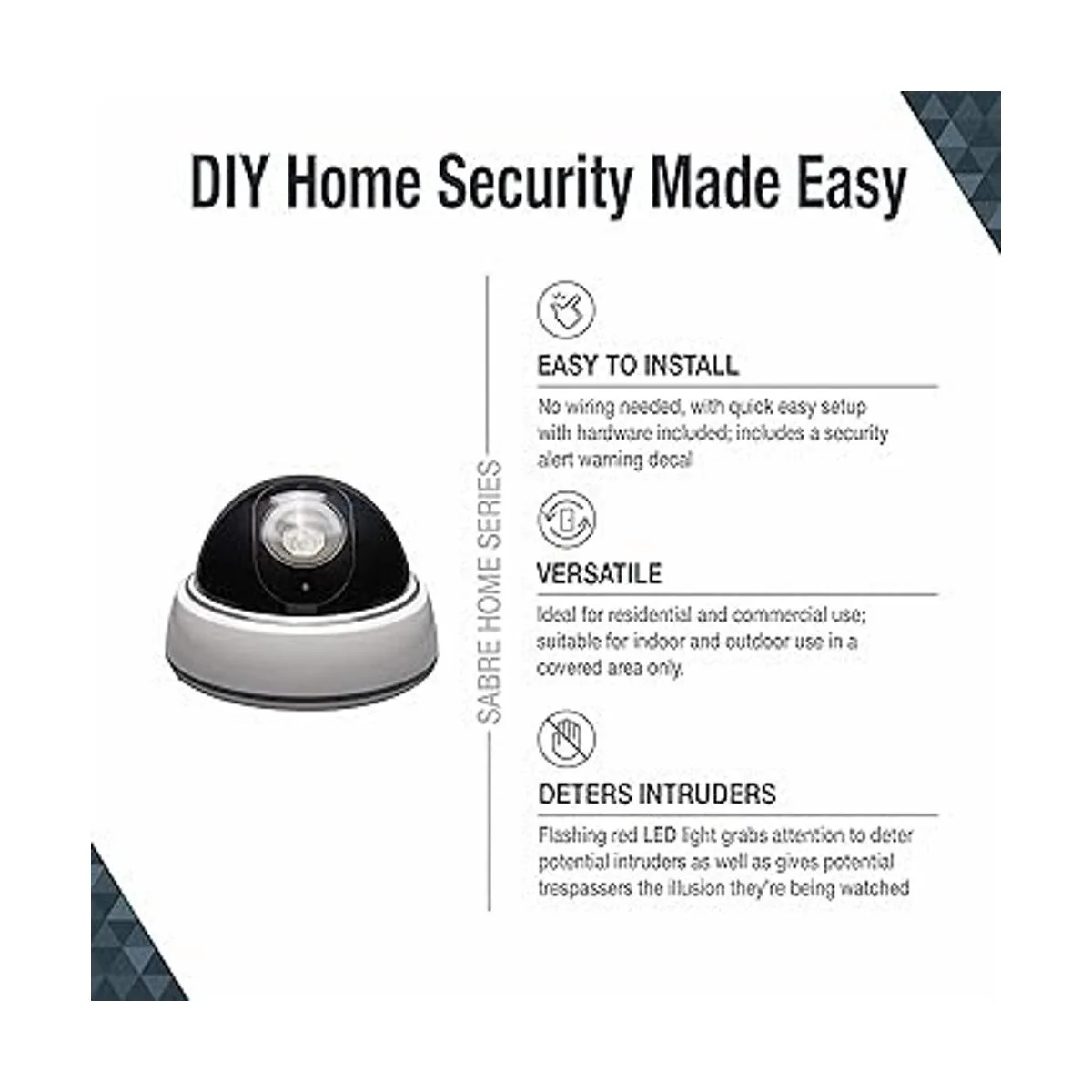 SABRE HSFSCD Cámara falsa para seguridad Diseño realista de estilo cúpula con luz LED roja intermitente para uso exterior o interior, sin cableado, fácil de instalar Blanco