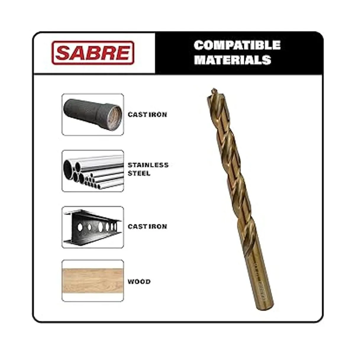Sabre Tools Brocas de cobalto de 516 pulgadas, 5 brocas para metal, juego de brocas de metal cobalto M35, punta de punta piloto, brocas de alta resistencia para acero, metal duro, hierro fundido 516 x 412 pulgadas