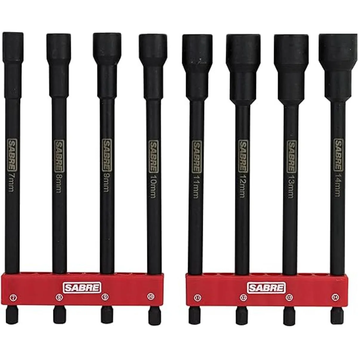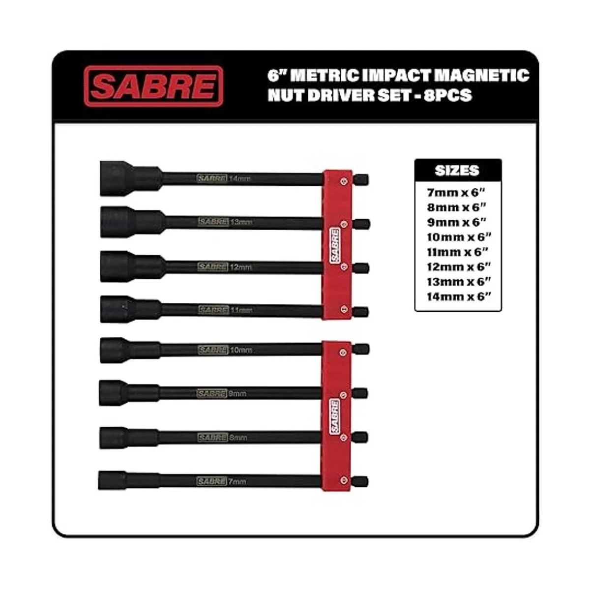 Sabre Tools Juego de 8 tuercas magnéticas de impacto métrico 6 pulgadas de largo, vástago hexagonal de 14 pulgadas, punta magnética juego métrico de 8 piezas