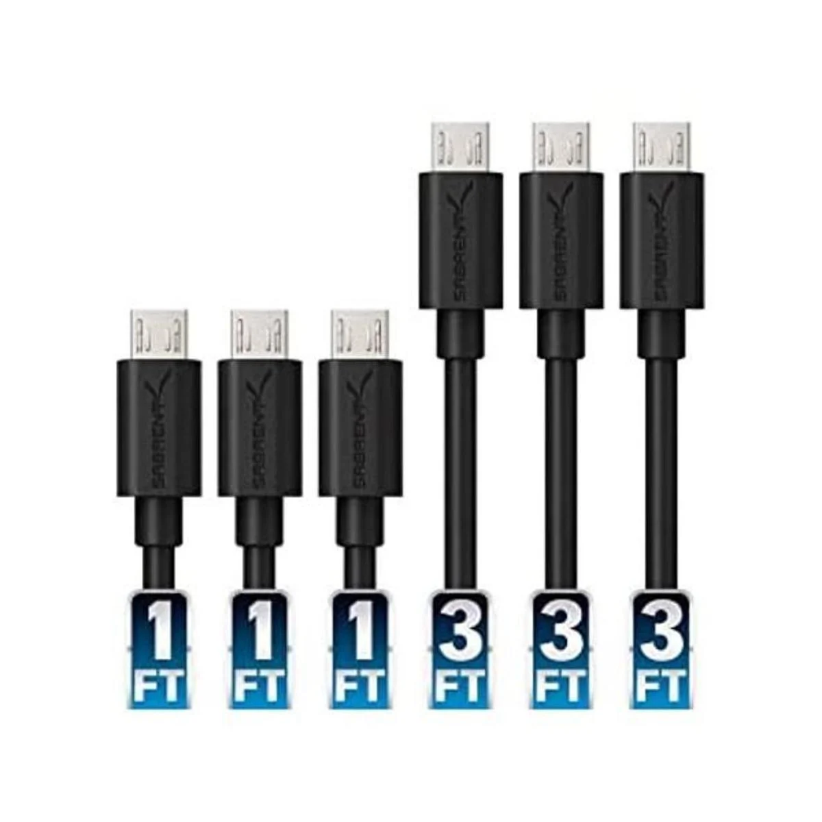 SABRENT Cables de carga rápida micro USB, 2.8 A 6 unidades, X33 pies X31 pies Compatible con Galaxy S6, S7 Edge Note 5, cable de control PS4, tablet Fire y tablet Kindle, sincronización y carga negro CBU631