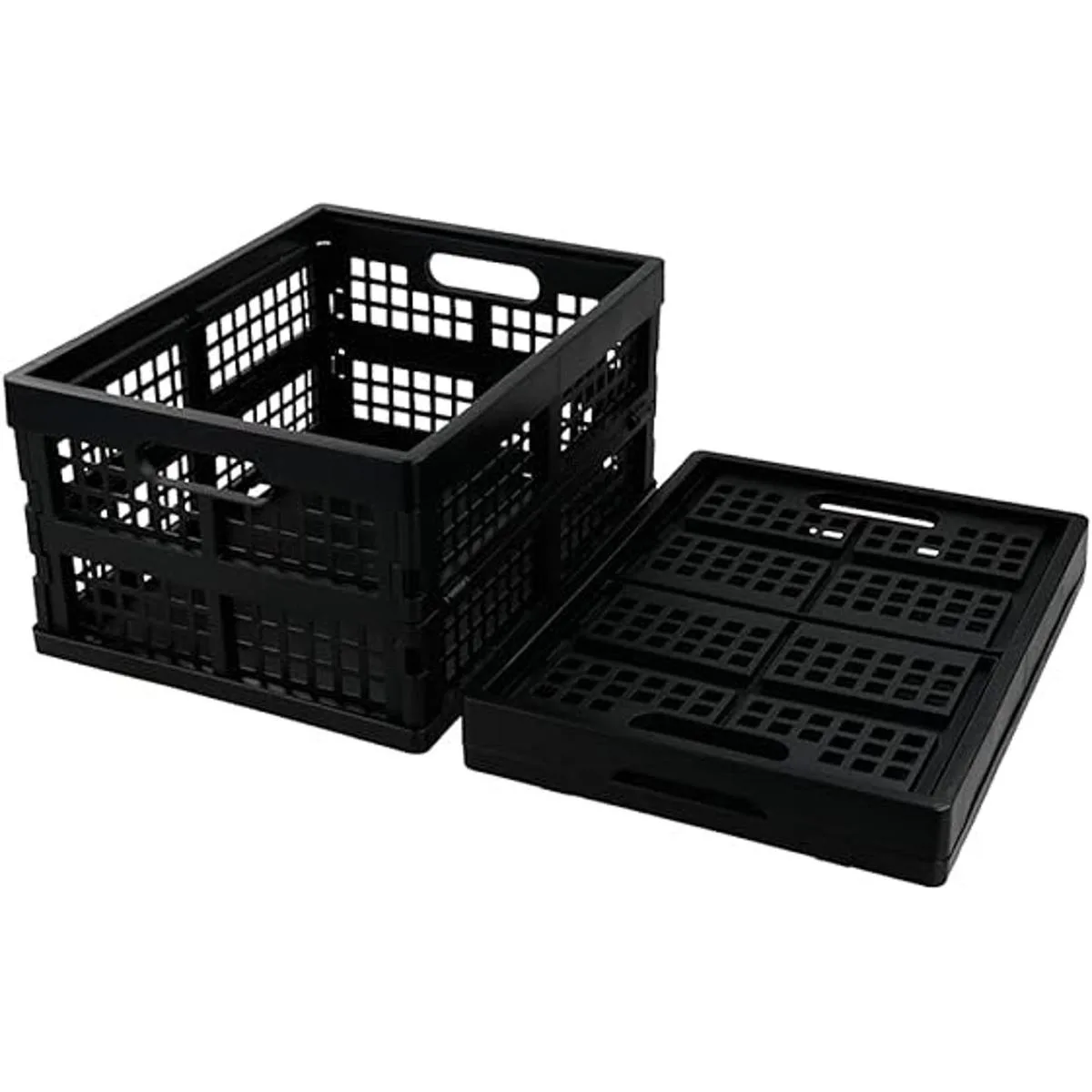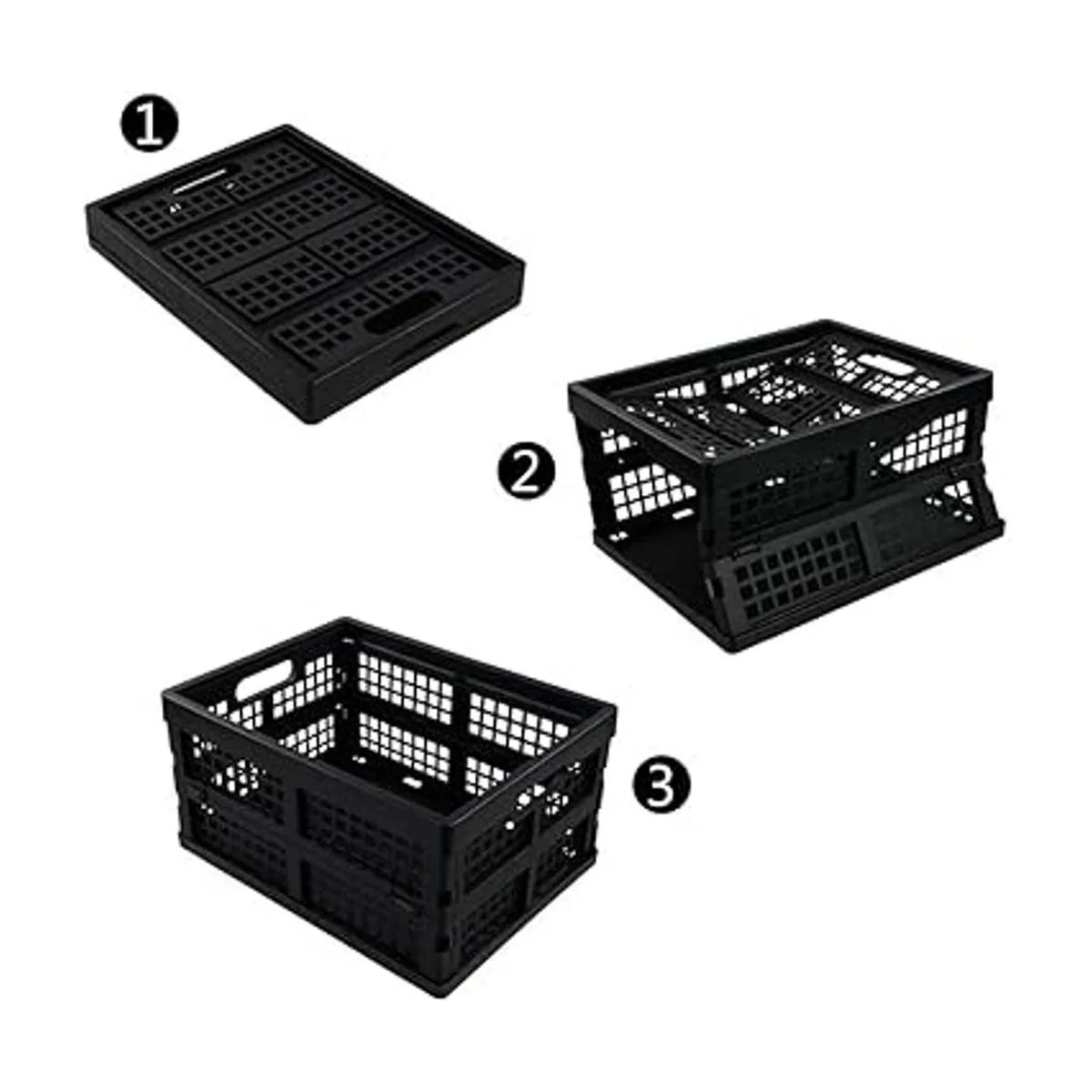 Saedy 16 Litros Negro Plegable Almacenamiento Crates, Cajón Plegable Cesta de Plástico Papeleras, 2 Paquetes
