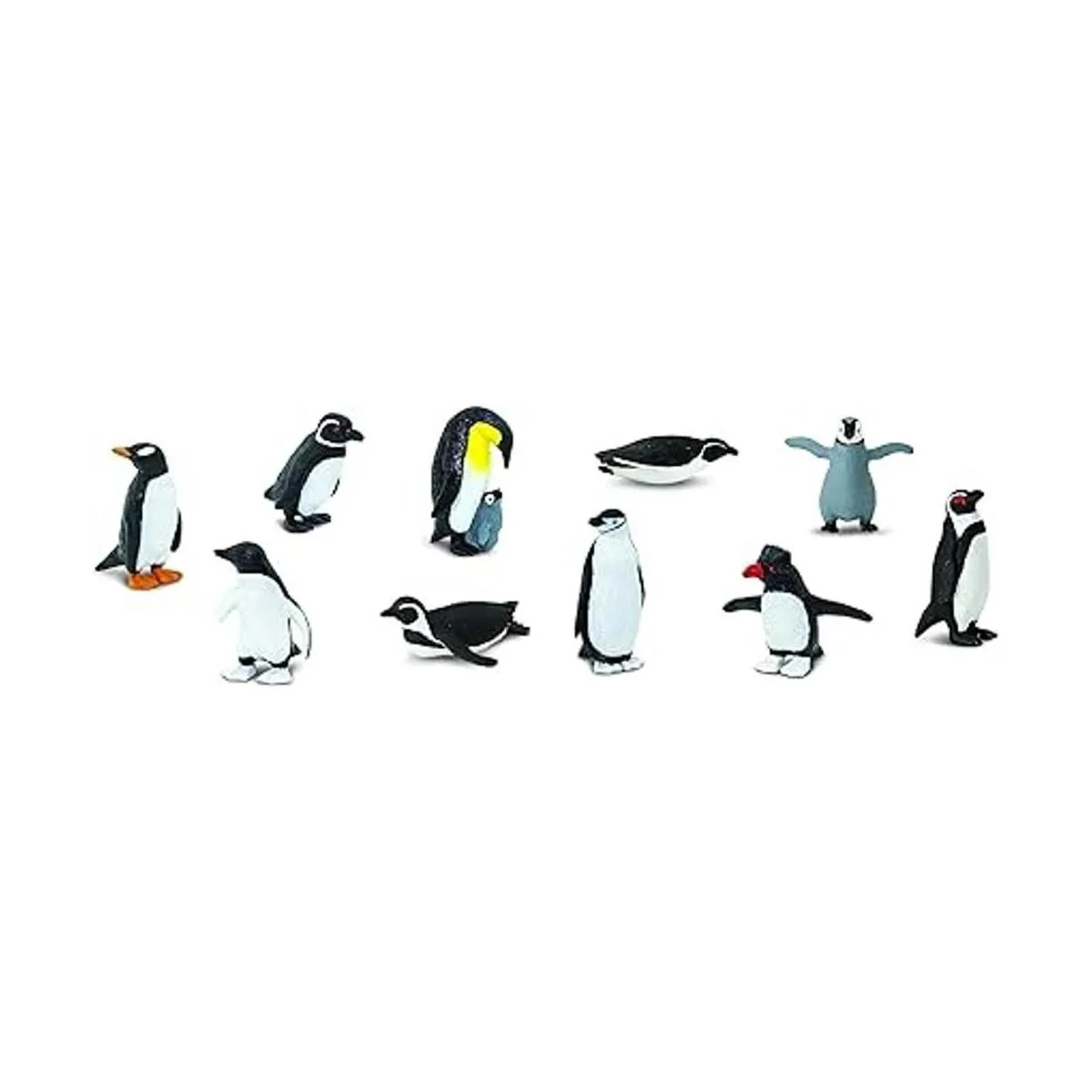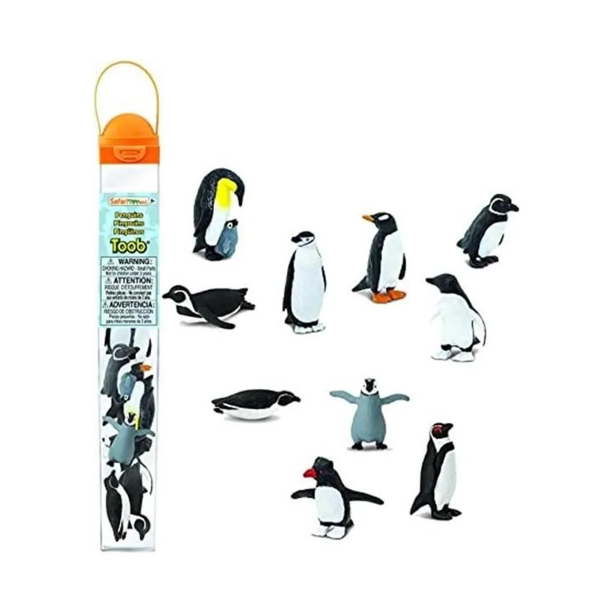 Safari Ltd TOOB de pinginos con 10 divertidas figuras que vuelan, Incluyendo Gentoo, Humboldt, chinstrap, Rockhopper, Galapagos, adelie, flotadores deslizantes, para bebé y pingino con bebé, para edades de 3 en adelante