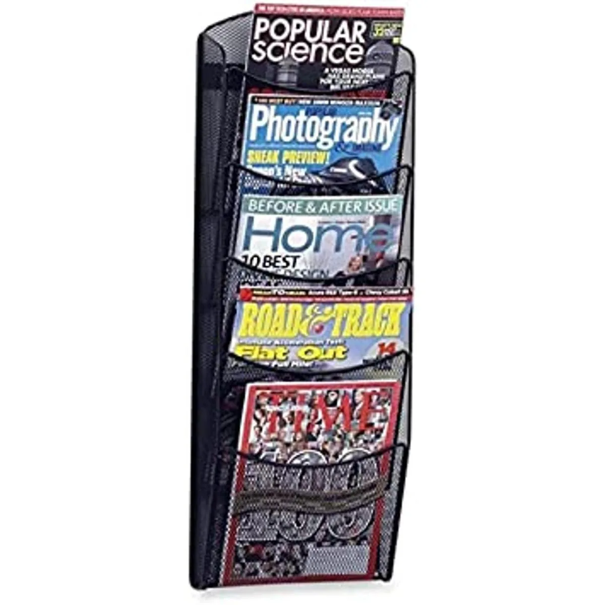 WALL DISPLAY. Onyx 5 Pocket Magazine Rack creates an eyecatching, clutterfree wall display of magazines, journals and bulletins in lobbies and common areas. Each pocket holds 3/4 of printed materials or up to 5 lbs.