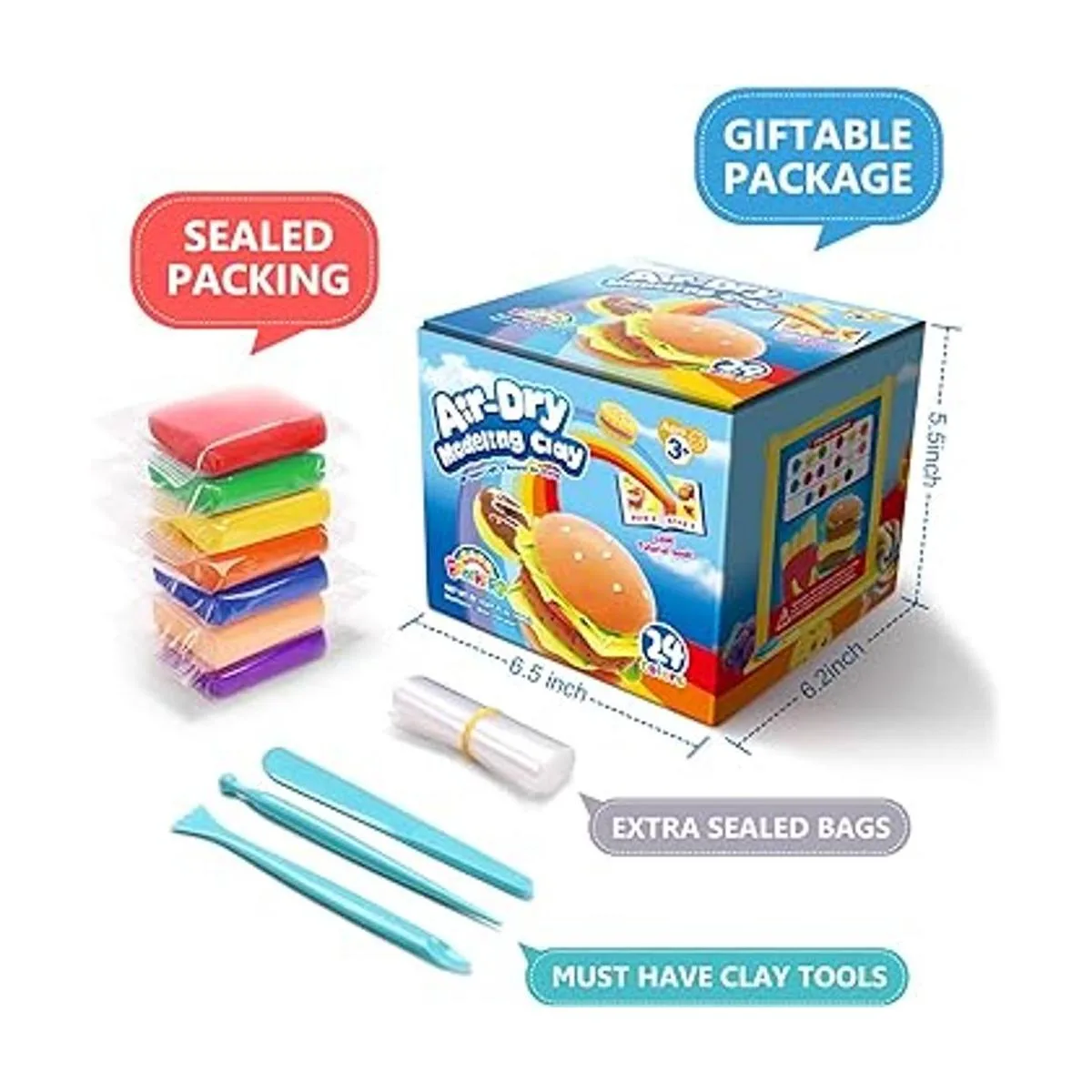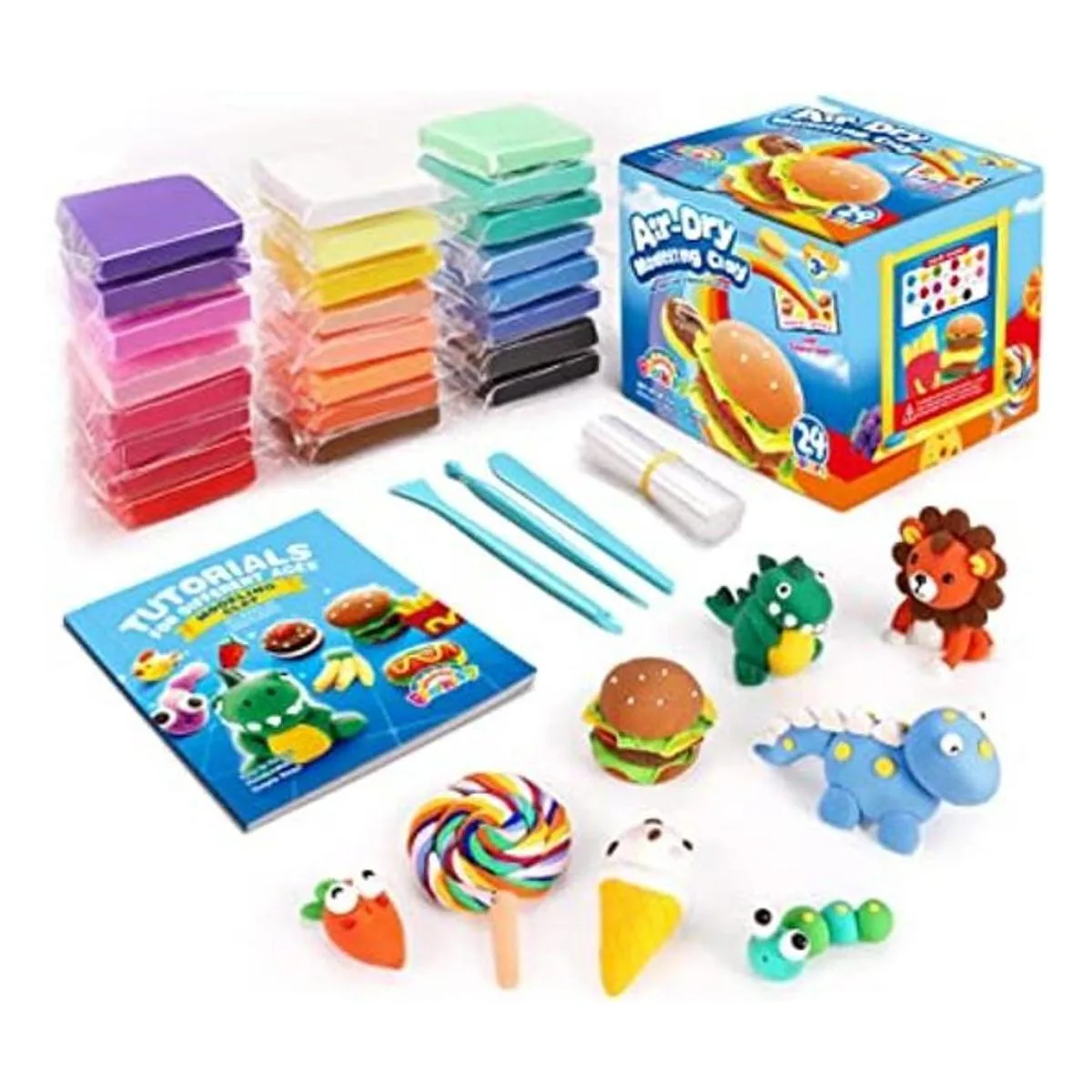 Sago Brothers Arcilla seca al aire, 24 colores, arcilla modeladora de juguetes para niños, 3 años de edad, kit de arcilla de moldeo sin ensuciar, modelo de arcilla mágica de Navidad, regalos de cumpleaños para niños y niñas de 3 a 12 años