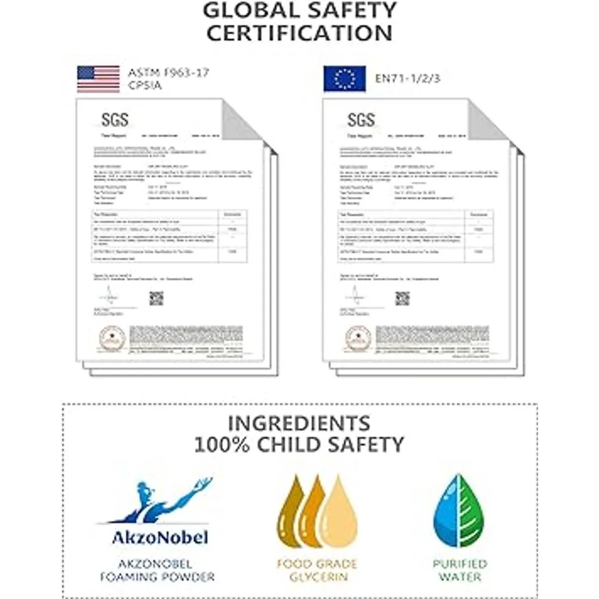 No tóxico y 100 seguro: el producto cumple con los requisitos ASTM D4236. Han pasado la certificación ASTM F96317, CPSIA y EN71. Sin trigo, nueces de árbol o cacahuetes. Arcilla seca al aire para niños y aprobada por los padres Ideas de regalos para niños como juguetes para niños, juguetes para niñas.