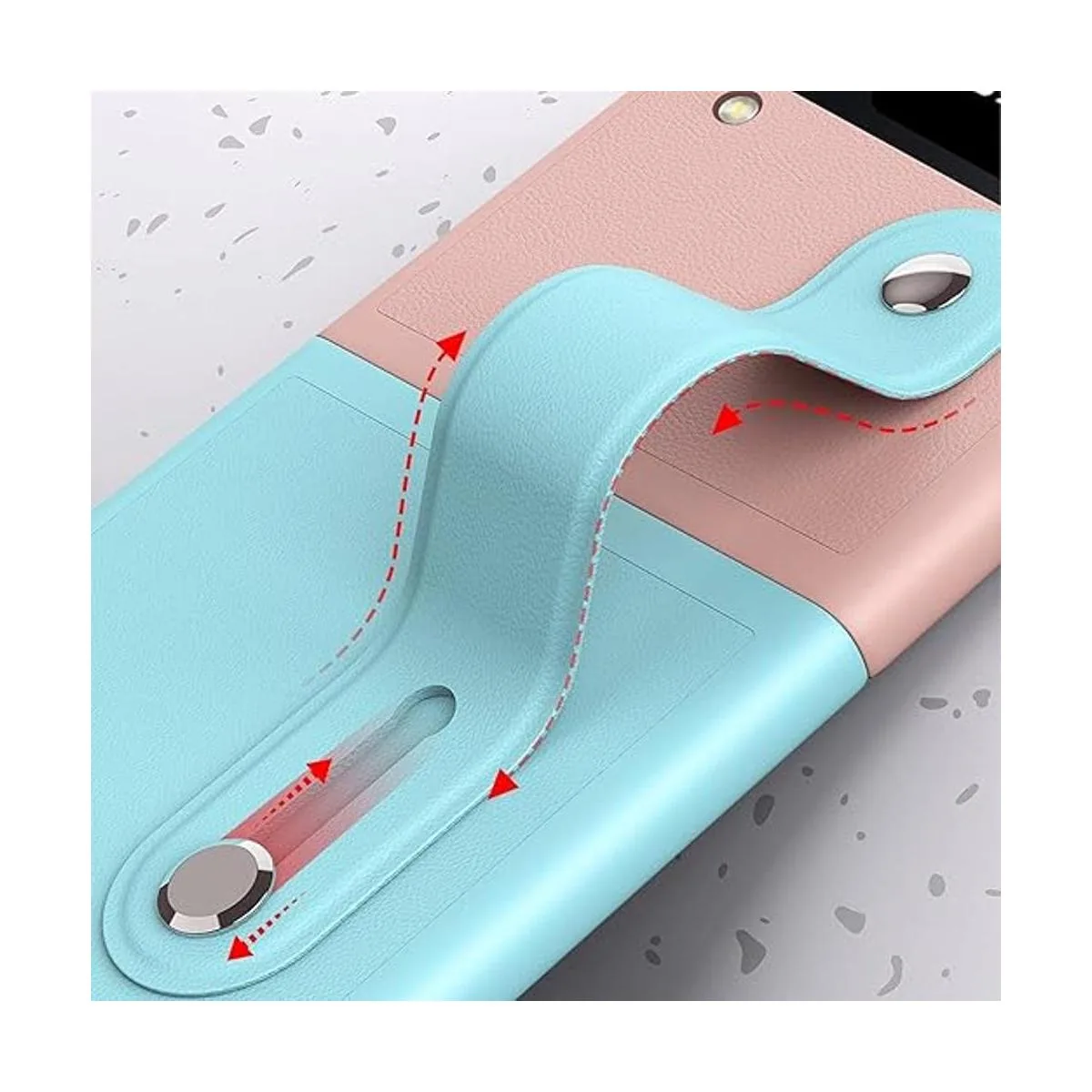 SaharaCase Funda para Samsung Galaxy Z Flip4 5G 2022 parachoques a prueba de golpes, correa de protección resistente de piel auténtica, soporte integrado, agarre antideslizante, ajuste delgado rosaazul hielo
