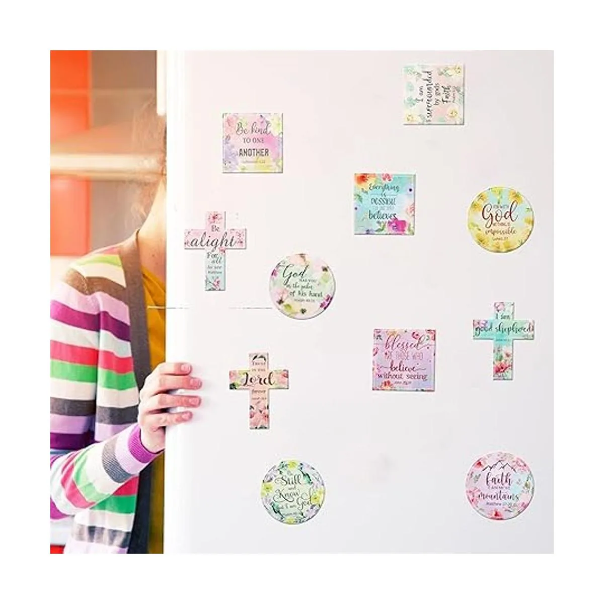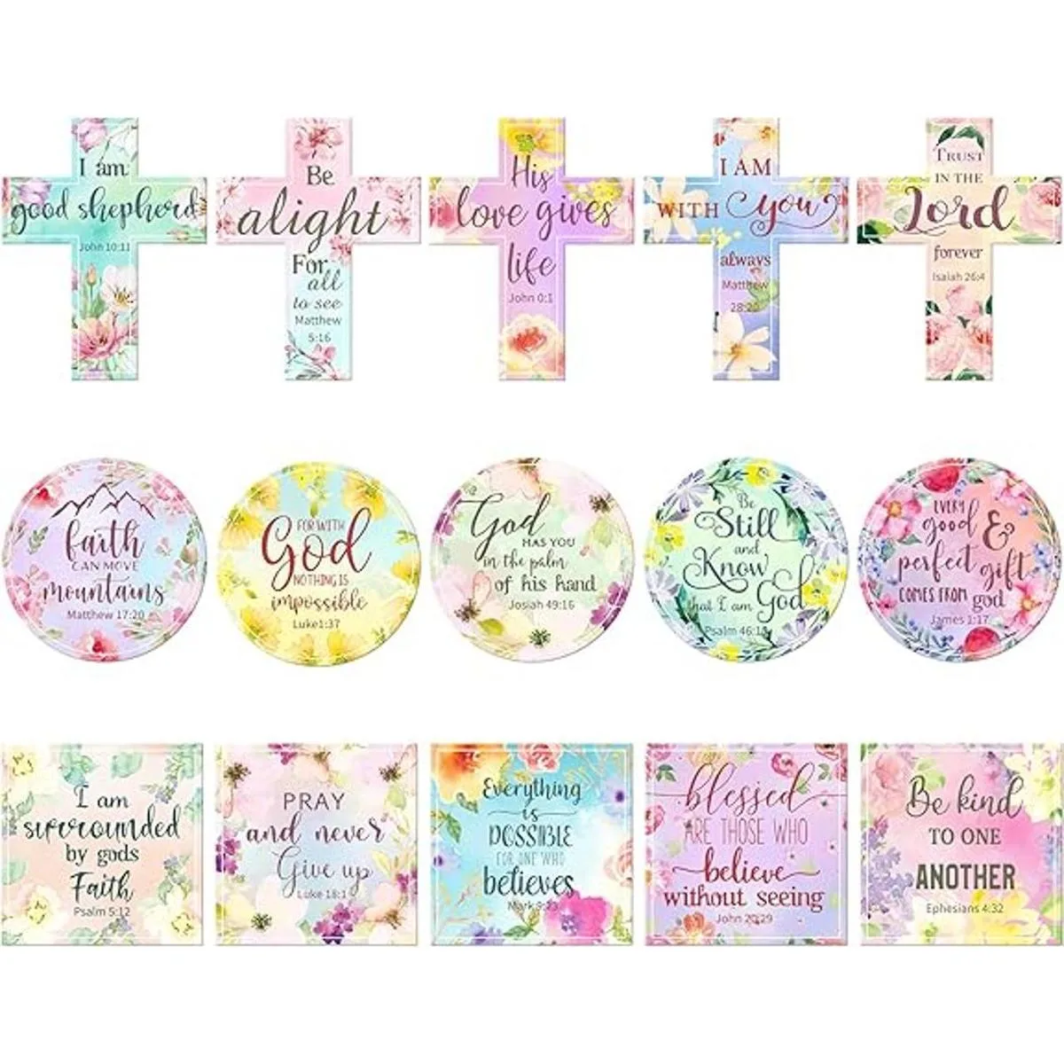 Saillong 15 imanes inspiradores para refrigerador con versículos bíblicos, imanes inspiradores fieles para casilleros inspirados en imanes de nevera, imanes motivacionales cristianos para refrigerador, 3 formas flor