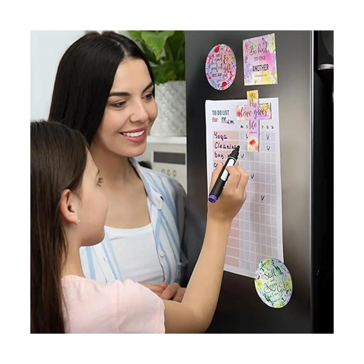 Fácil de usar: con un rendimiento magnético confiable, los imanes inspiradores se pueden fijar fácil y firmemente a la superficie de metal, adecuados para decorar tu nevera, taquilla, pizarra blanca, ventana, oficina o mantener algunas notas, recordatorios, listados de tareas, en tu cocina