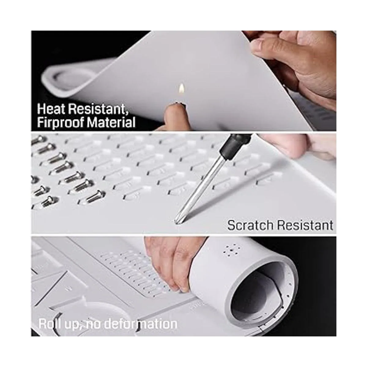 Amplia aplicación: la alfombrilla de soldadura grande está especialmente diseñada para reparar smartphone, laptop, computadora, reloj deportivo, cámara, juguete inteligente, gafas, etc. Además, se puede utilizar para soldar montaje electrónico o reparación de electrónica y placa de circuito con la estación de soldadura.