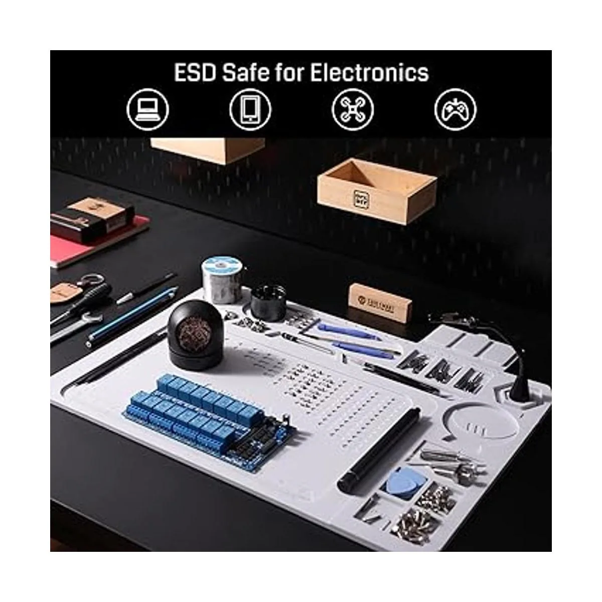SainSmart Tapete de soldadura de silicona grande de 20 x 14 pulgadas, resistente al calor de 932 F con correa para la muñeca, tapete magnético antiestático para soldadura, placa PCB, teléfono y reparación electrónica, color gris