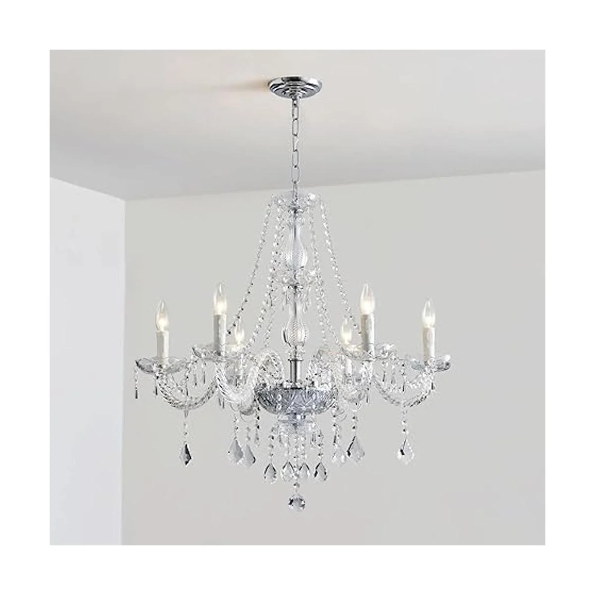 Saint Mossi Candelabro moderno de cristal K9, candelabro con iluminación, lámpara de techo de cristal transparente, lámpara con dijes para comedor, baño, dormitorio, sala de estar con 6 luces