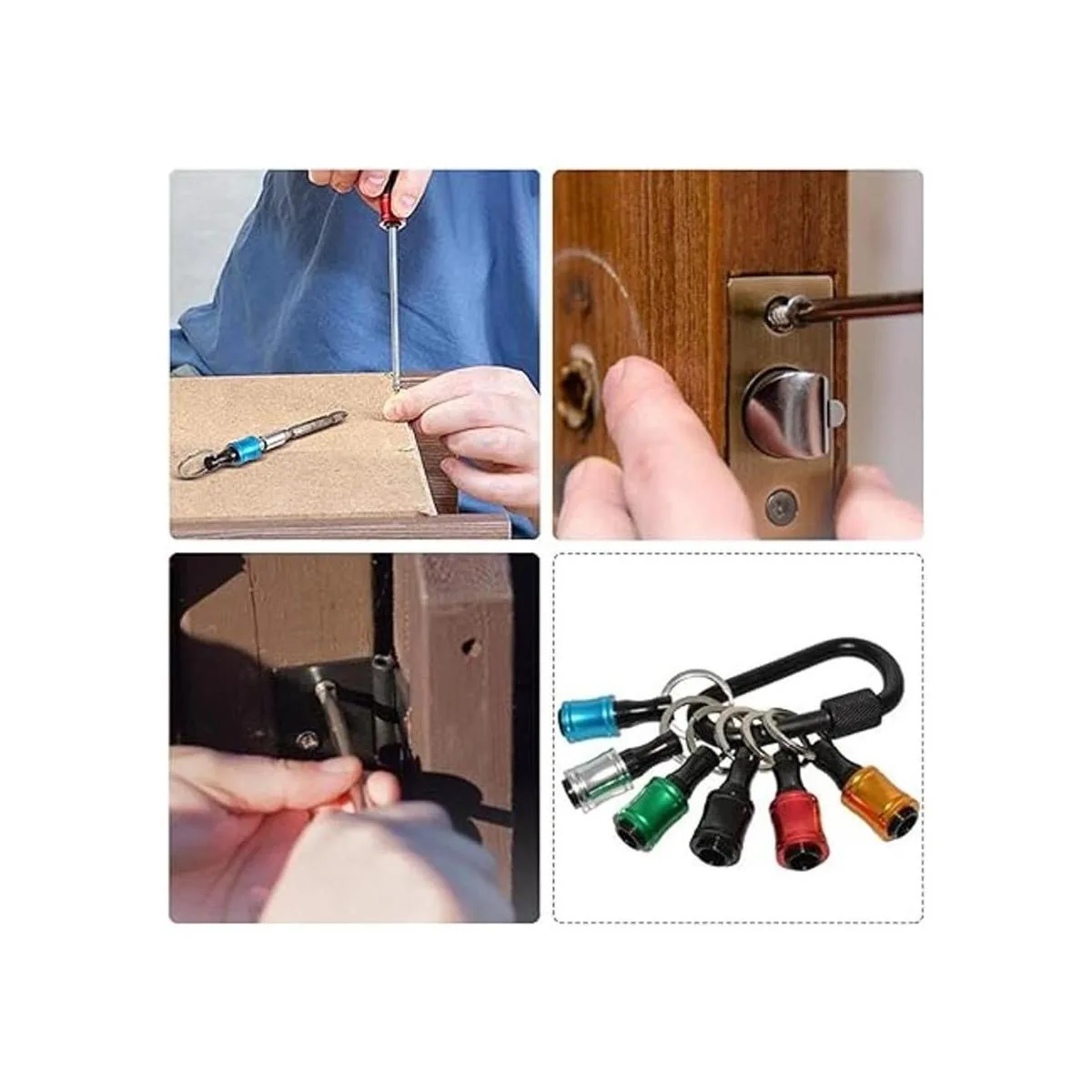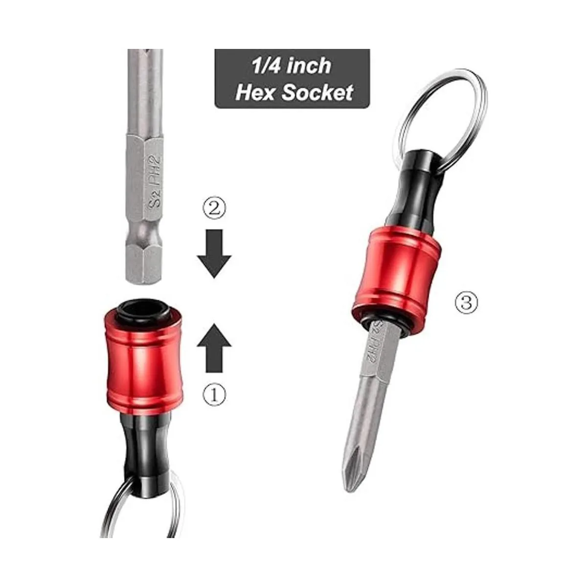 Duradero y resistente: este juego de soportes para puntas de destornillador está hecho de aleación de aluminio de alta calidad para una mayor dureza. La potente hebilla de bloqueo de bola puede llevar herramientas de hasta 17.64 oz de peso.