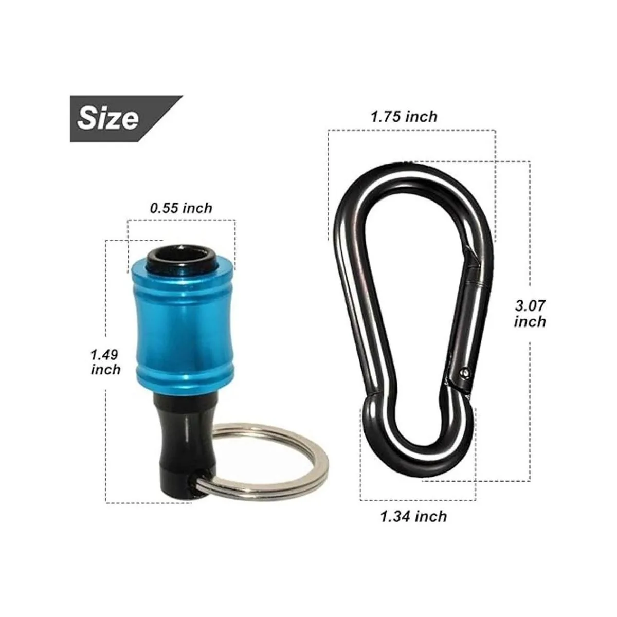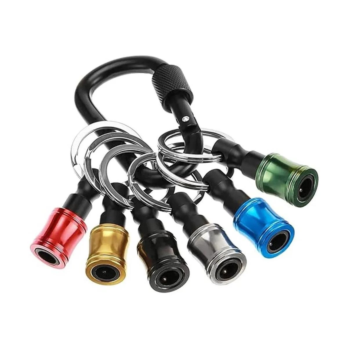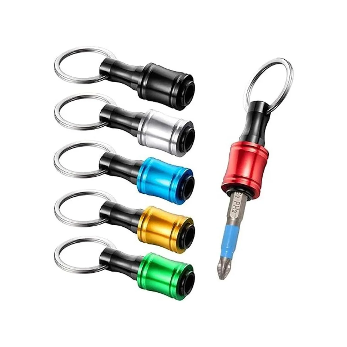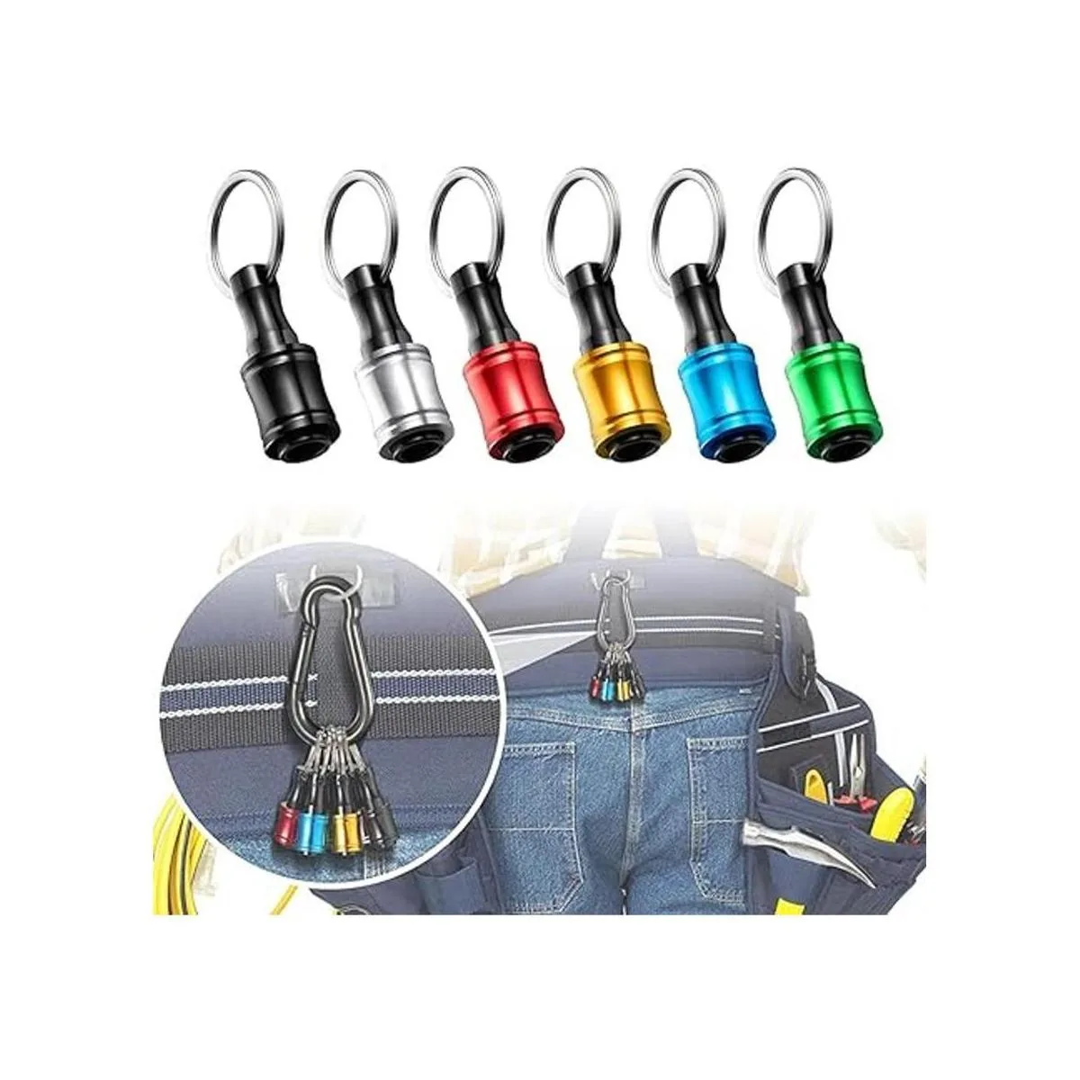 Soporte para brocas de llavero: 6 barras de extensión vienen con una hebilla de llavero, que se puede instalar fácilmente en hebillas de cadena. Compacto y portátil, fácil de transportar.