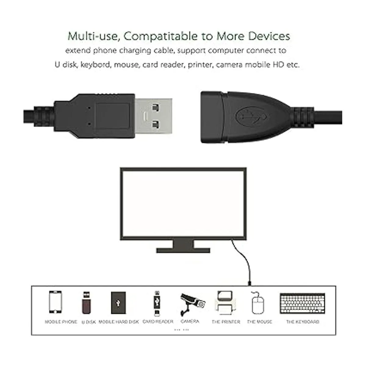 Cable de extensión y sincronización de datos y datos de extensión flexible de alta velocidad USB 2.0 macho a hembra de 5.9 in
