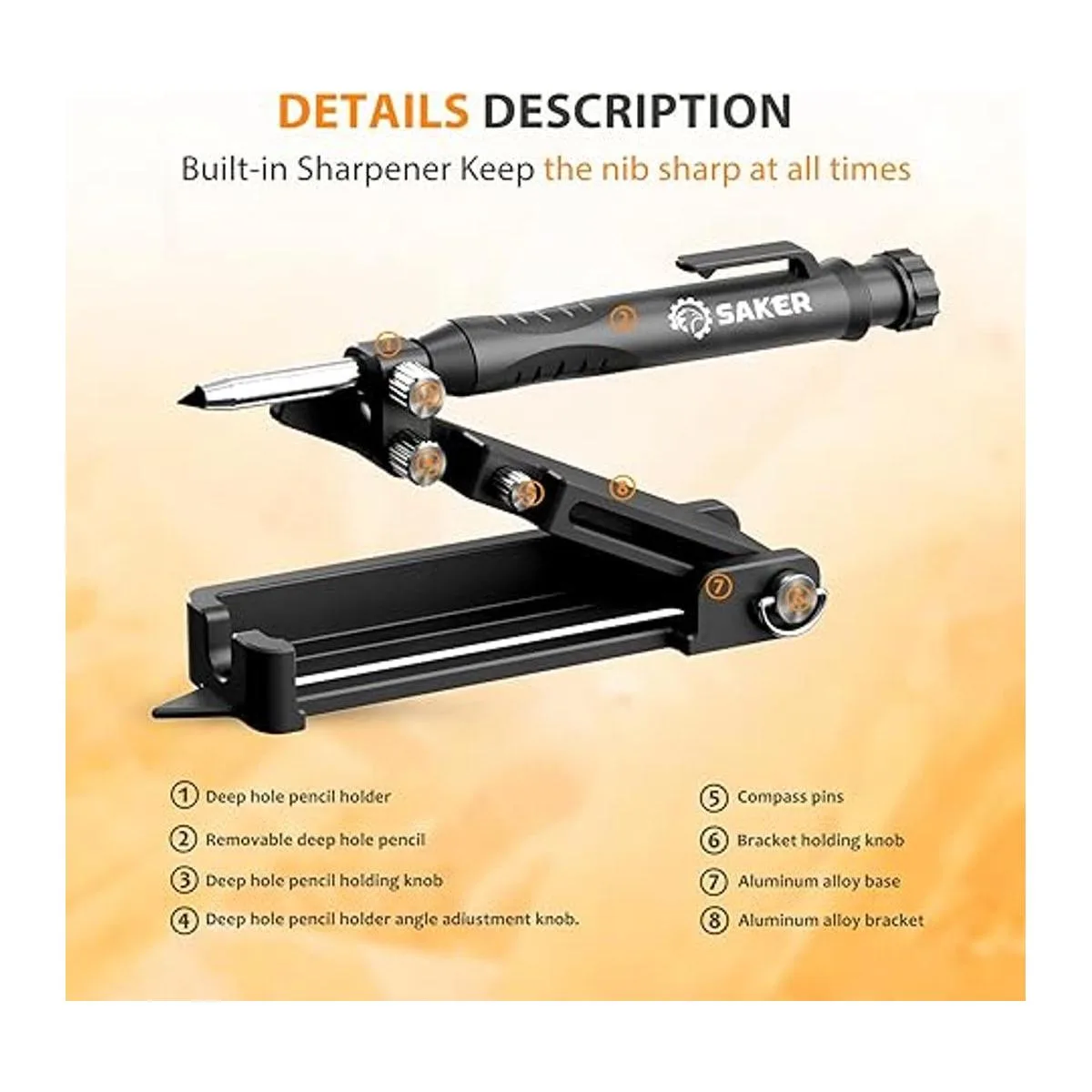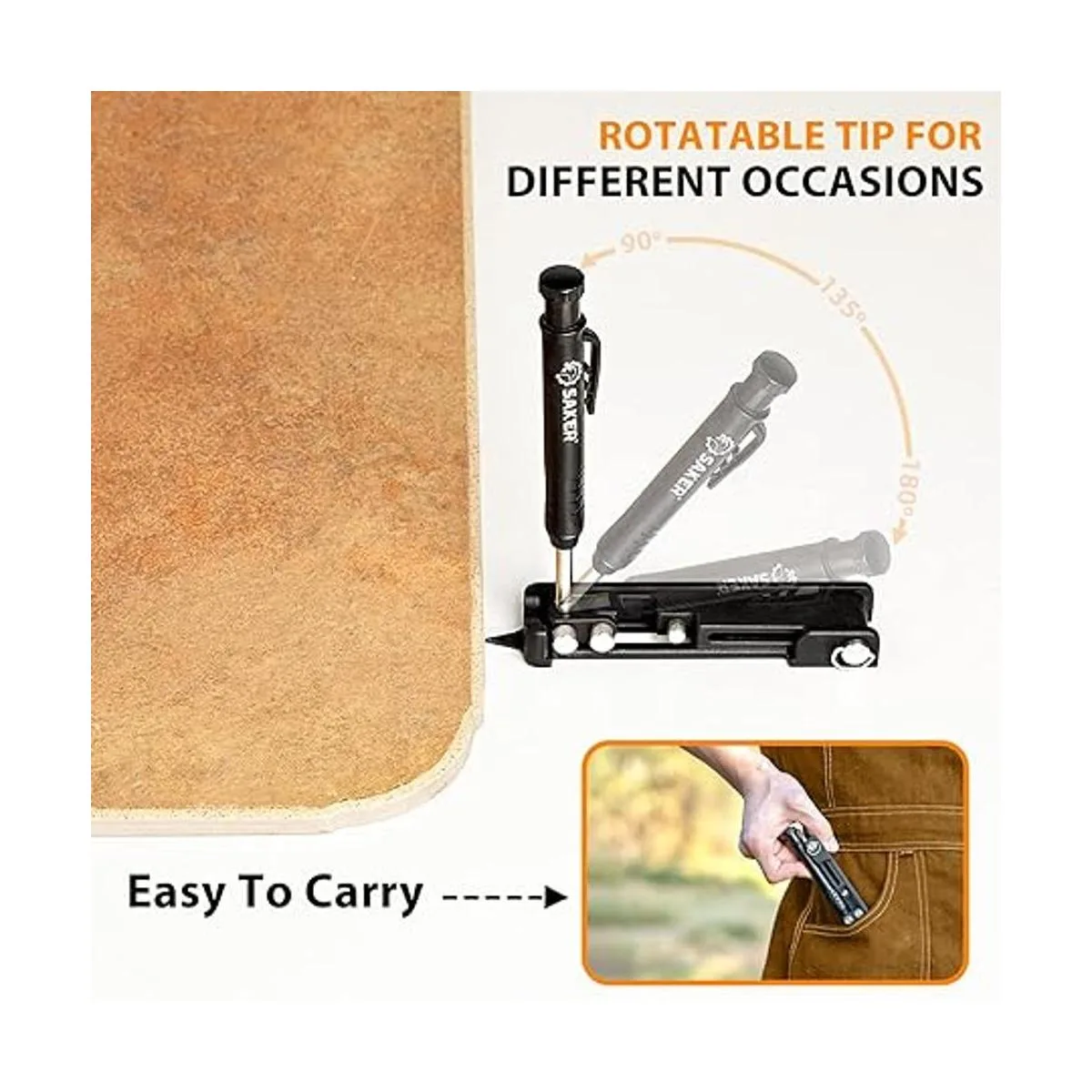 Saker herramienta multifunción de escritura para lápiz de obra, herramienta de escritura de aleación de aluminio con lápiz de agujero profundo, herramienta de medición de líneas para carpintería
