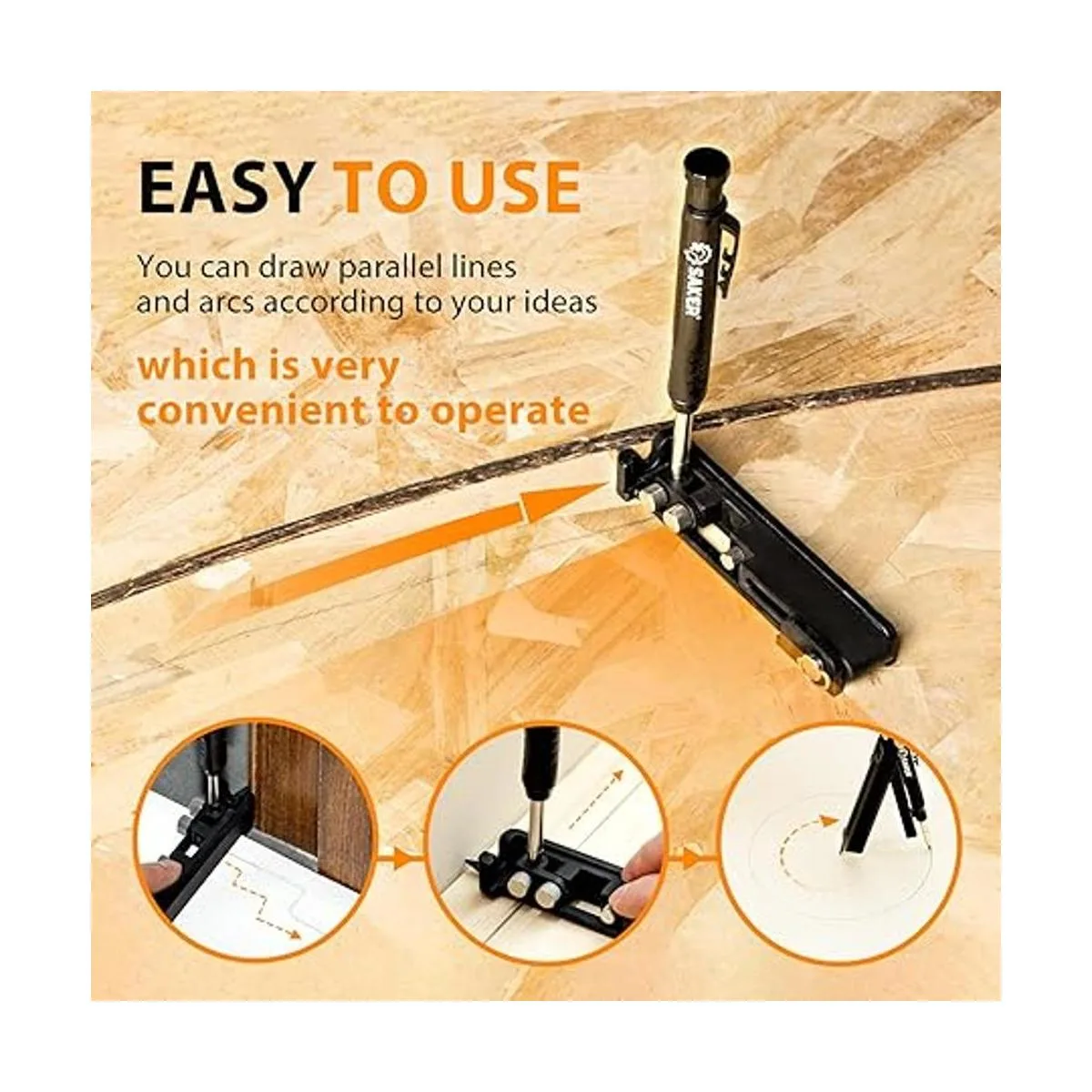Fácil de usar: la escala de la herramienta de escritura lineal y de arcos para carpintería es claramente visible. Puedes dibujar líneas paralelas y arcos de acuerdo a tus ideas, es muy fácil de usar.
