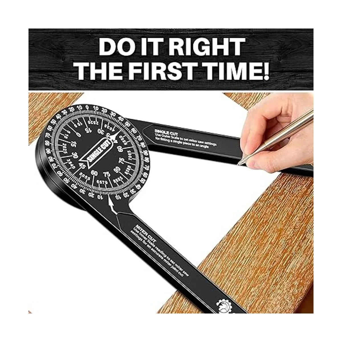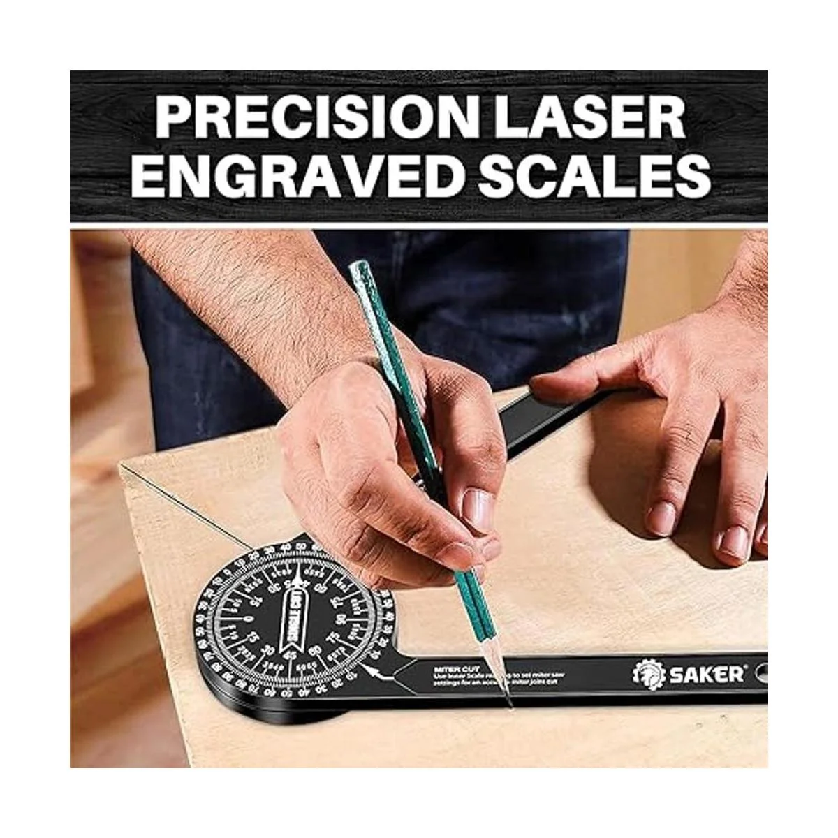 Saker Transportador para sierra ingletadora, 7 pulgadas, de aluminio, con ángulos internos y externos precisos grabados en láser, herramienta para carpinteros, plumeros y oficios de construcción negro