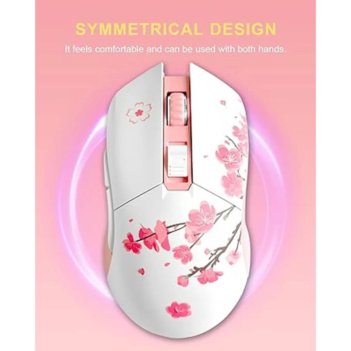 Sakura Mouse inalámbrico para juegos con cable, DAREU recargable de modo dual con 7 botones programables, 10K DPI, RGB y 7 niveles de DPI ajustables hasta 150IPS tasa de sondeo de 1000 Hz para PC, portátil, Mac PS4 PS5