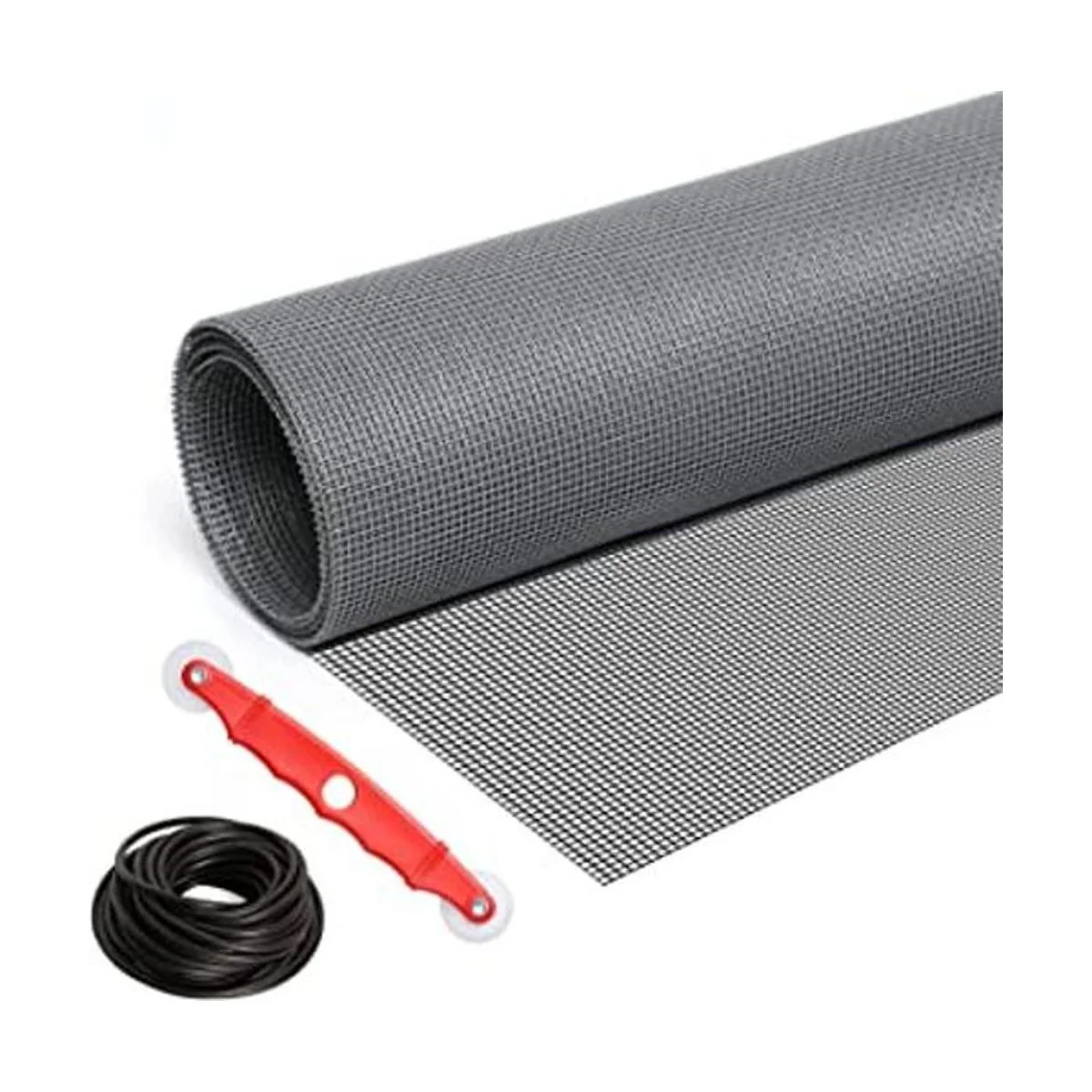 SAKURRY Kit de reemplazo de pantalla de ventana, malla de fibra de vidrio de 48 x 99 pulgadas, con herramienta rodante y ranura de retención de pantalla, malla ajustable para puerta de ventana, puerta y patio, gris