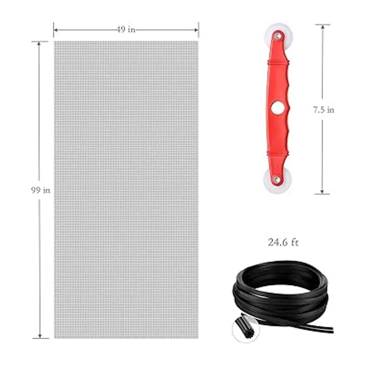 Kit de repuesto de pantalla: el kit de reparación de pantalla de ventana viene con pantalla de ventana de 48 x 99 pulgadas, herramienta de pantalla rodante 2 en 1 y ranura de retención de pantalla de 24.6 pies. Se puede utilizar como una pantalla de ventana nueva o de repuesto. Puedes reemplazar fácilmente la pantalla en poco tiempo, incluso si no tienes experiencia.