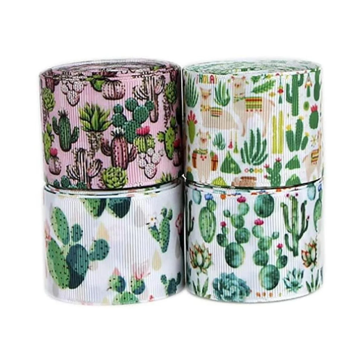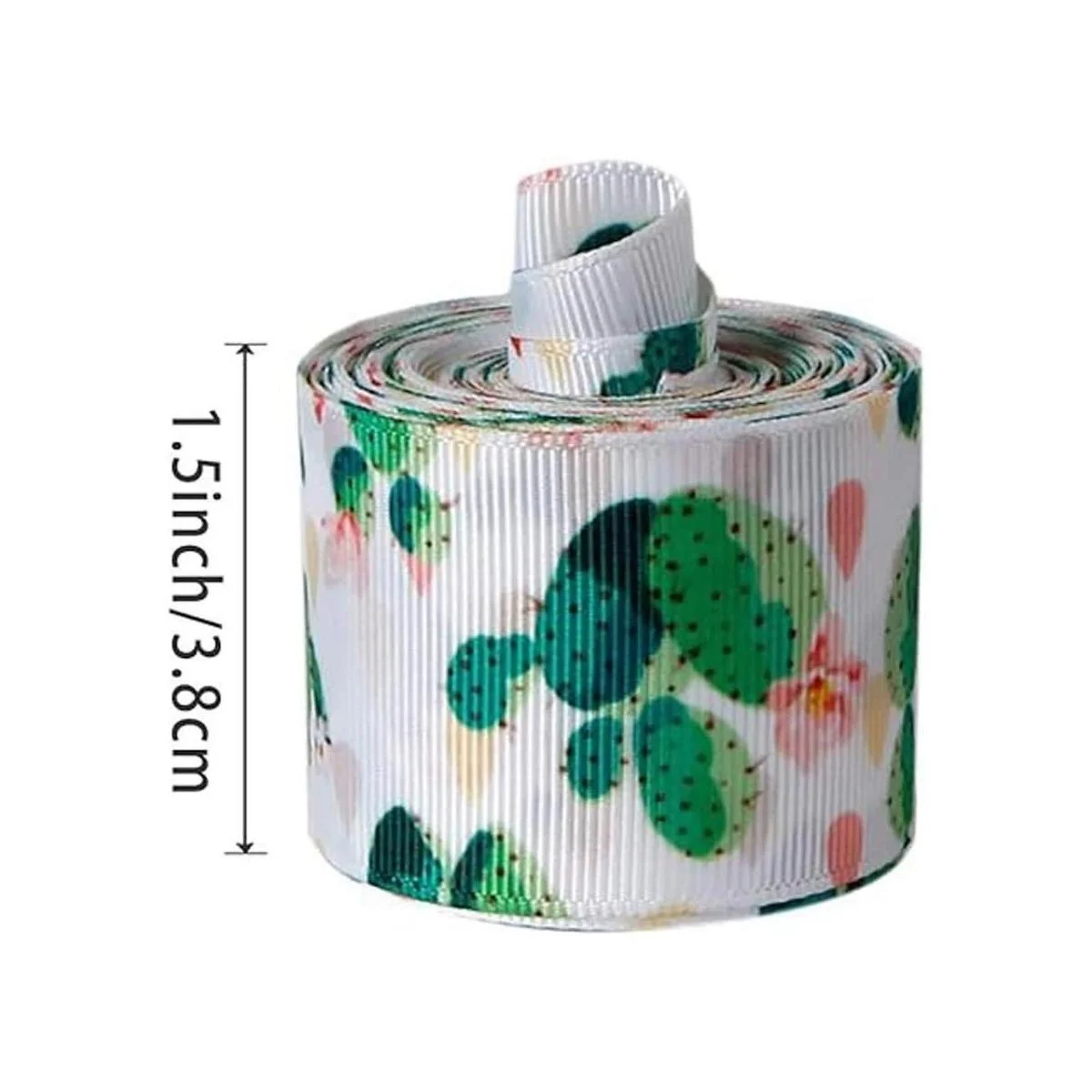 Samanter Cinta de impresión de cactus de 1.5 pulgadas para plantas de verano de flores de arpillera para regalo coronas de árboles, manualidades, decoraciones de vacaciones de 5 yardas x 4 rollos