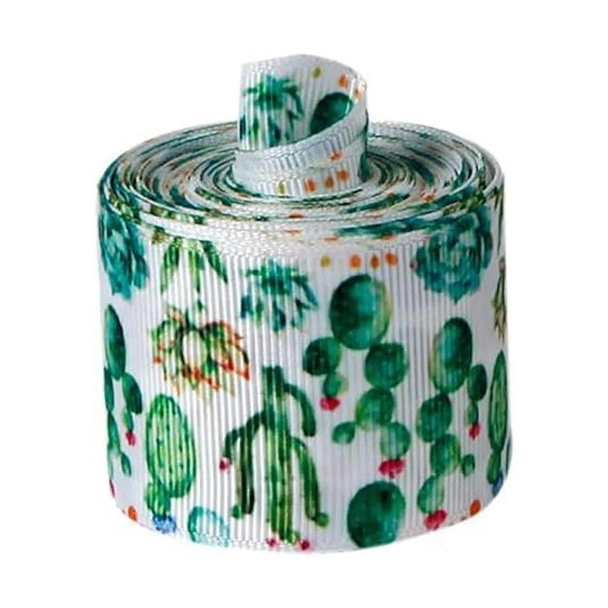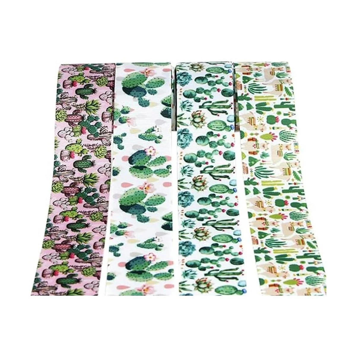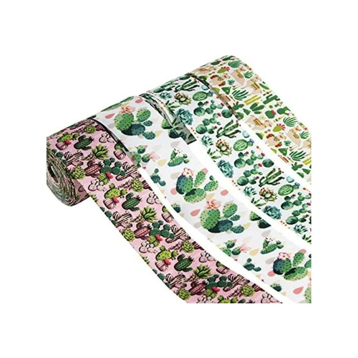 Envoltorio de regalo: el diseño de la cinta de impresión con 4 estilos de impresión de cactus, lleno de ambiente veraniego, agradable para decorar coronas conmemorativas, guirnaldas, cajas de regalo o crear tu propio lazo.