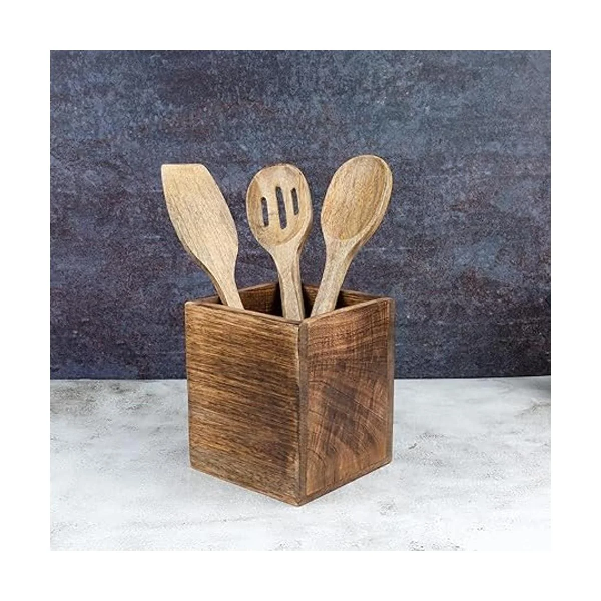 Samhita Soporte para utensilios de cocina con acabado en madera de mango para encimera, contenedor para utensilios de cocina 8 x 5 x 6 pulgadas