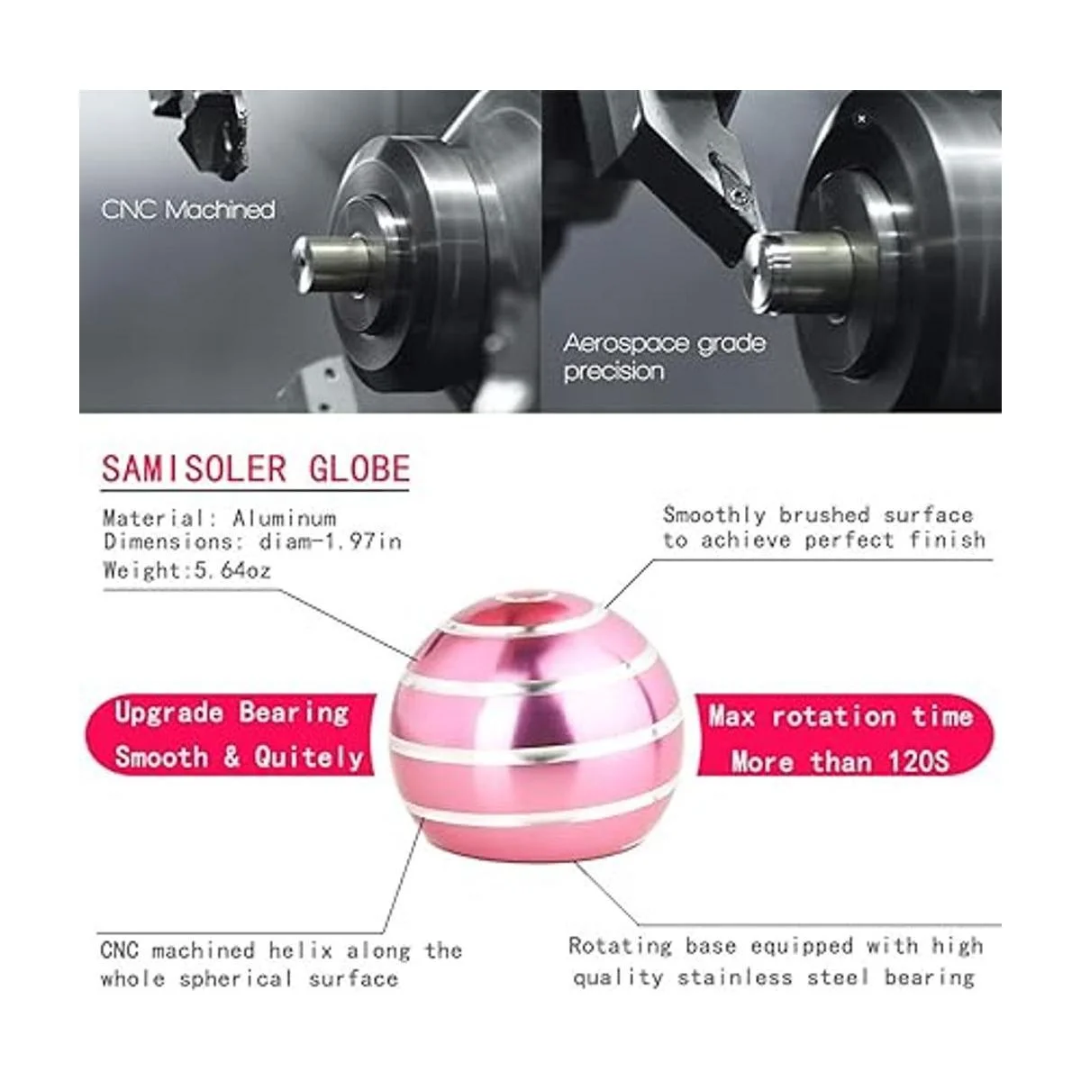 Por favor, mira vídeo Hecho de metal de aluminio y mecanizado por CNC de precisión. El juguete de escritorio tiene una ranura de hélice fresada en toda la superficie. Cada bola tiene una base de metal giratoria equipada con rodamiento de acero de alta calidad.
