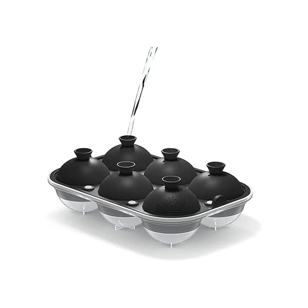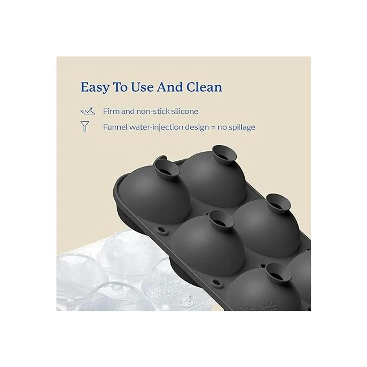 Fácil de hacer y sin derrames: la máquina de bolas de hielo viene con un diseño de inyección de agua en forma de embudo que te permite llenarla fácilmente sin derrames. La máquina de bolas de hielo sin complicaciones cuenta con silicona flexible que hace 6 bolas de hielo perfectamente redondas y también tiene una base de plástico para una portabilidad rápida