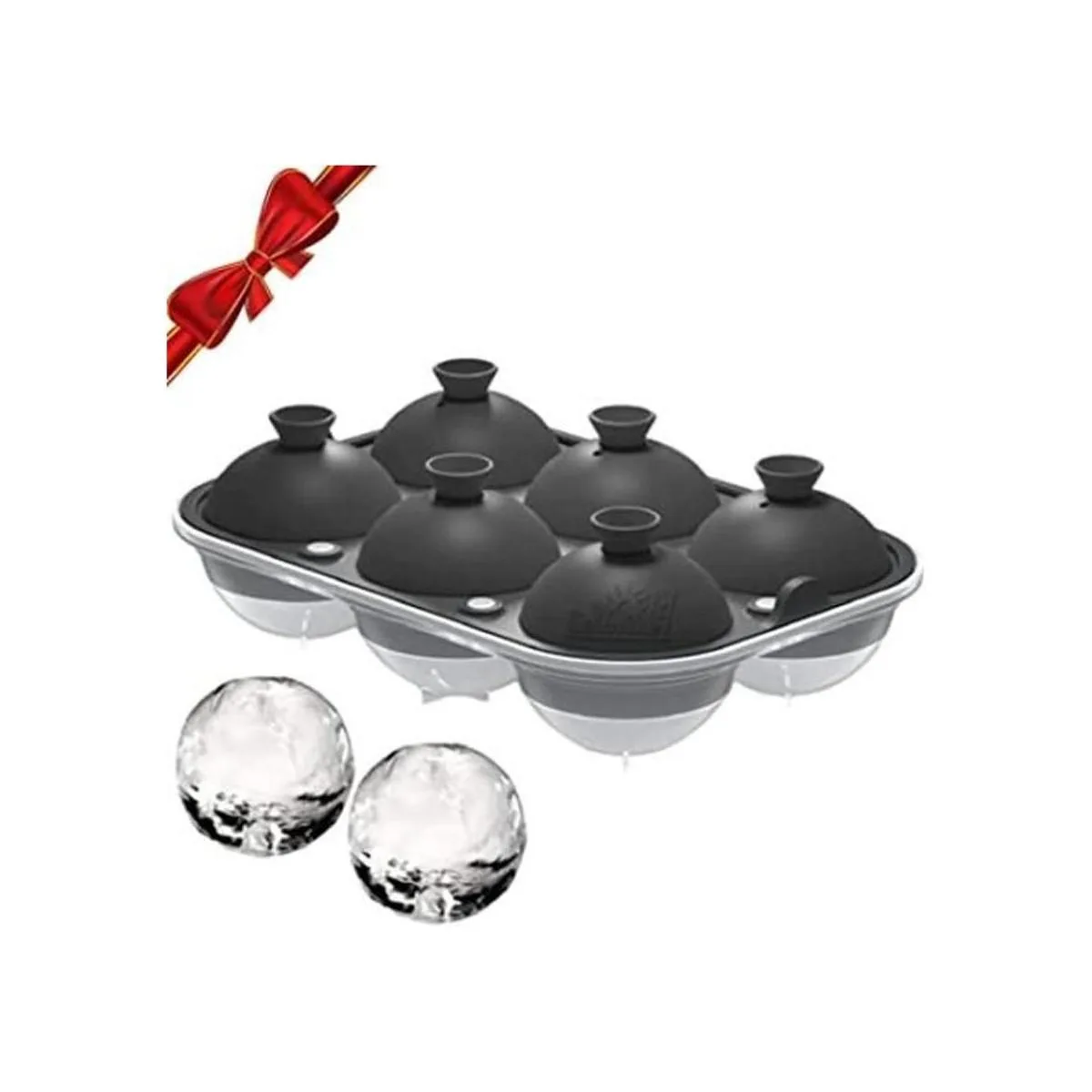 Samuelworld Molde de hielo de esfera grande con tapa, 6 bolas de hielo de 2.5 pulgadas, calidad alimentaria, bandeja de hielo redonda de silicona fácil de llenar, máquina de hielo perfecta para whisky, cócteles, Navidad, color gris