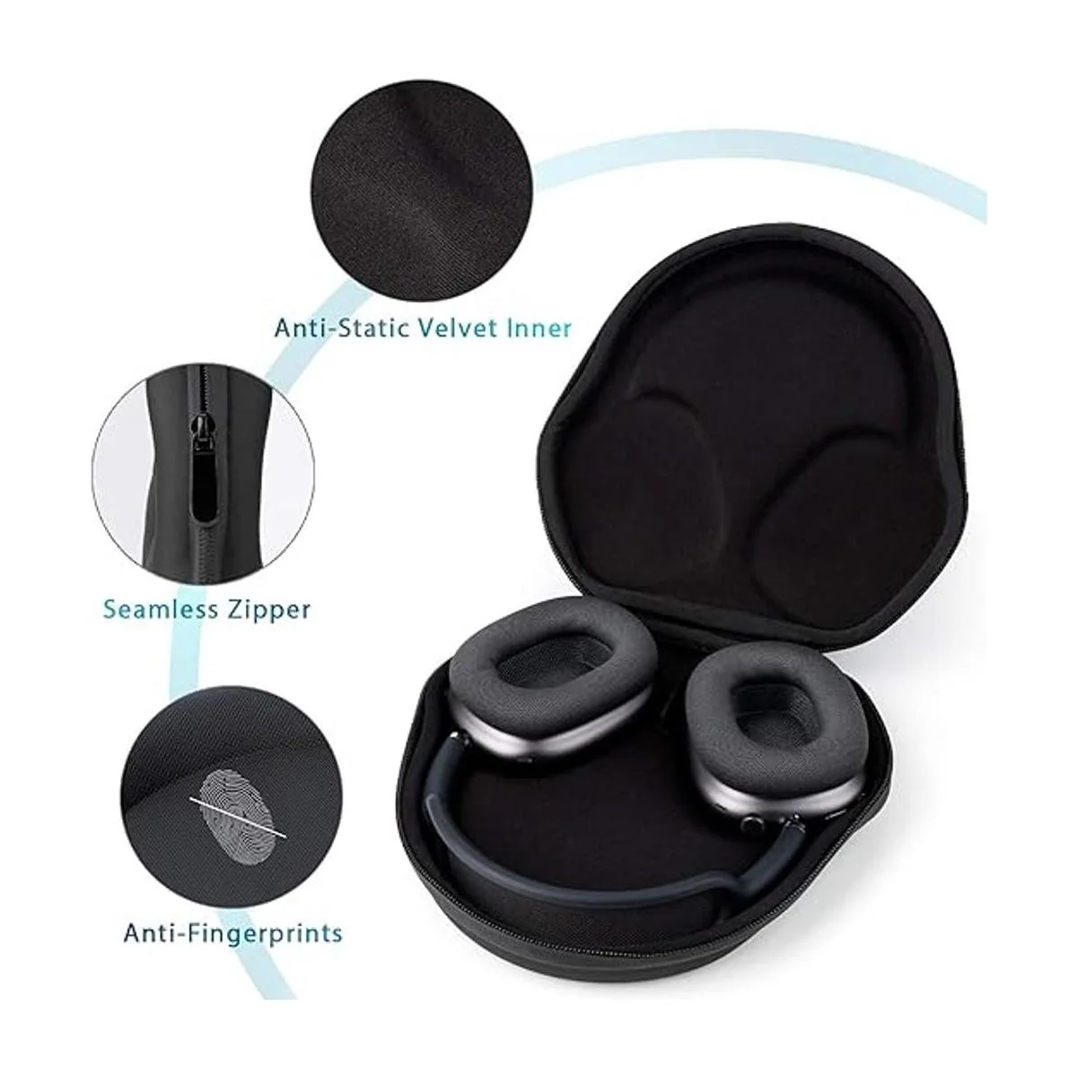 Excelente protección: carcasa de EVA ultra rígida diseñada que protege contra caídas, impactos o aplastamientos, proporciona durabilidad y rendimiento duradero. La capa interior es de terciopelo antiestático, puede absorber eficazmente el impacto y reducir el daño a los auriculares causado por colisiones accidentales.