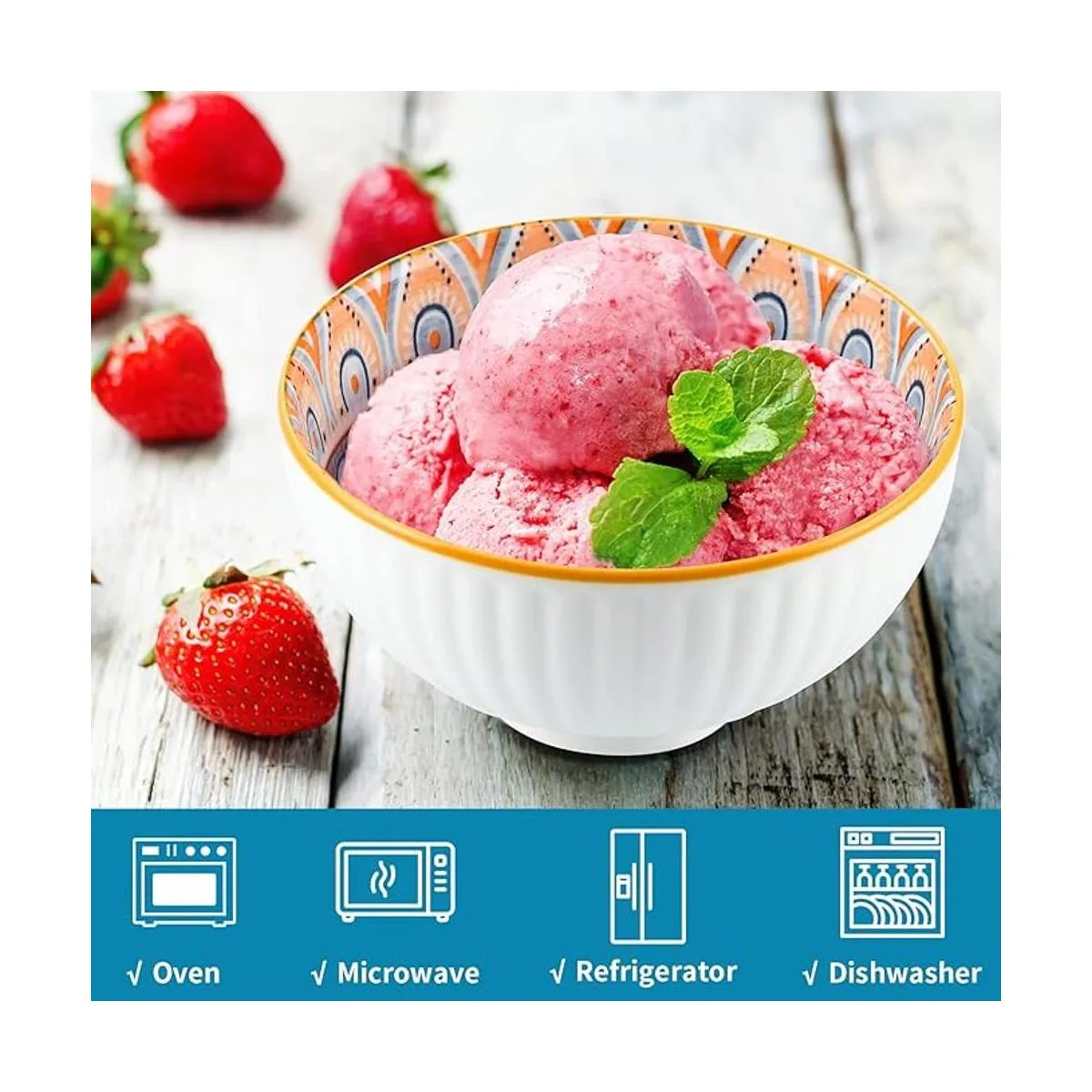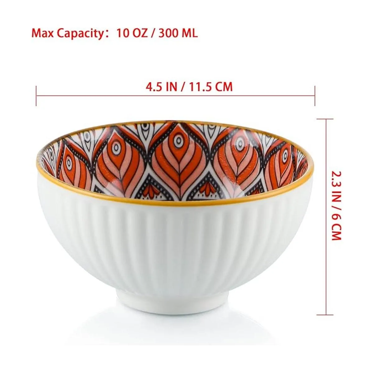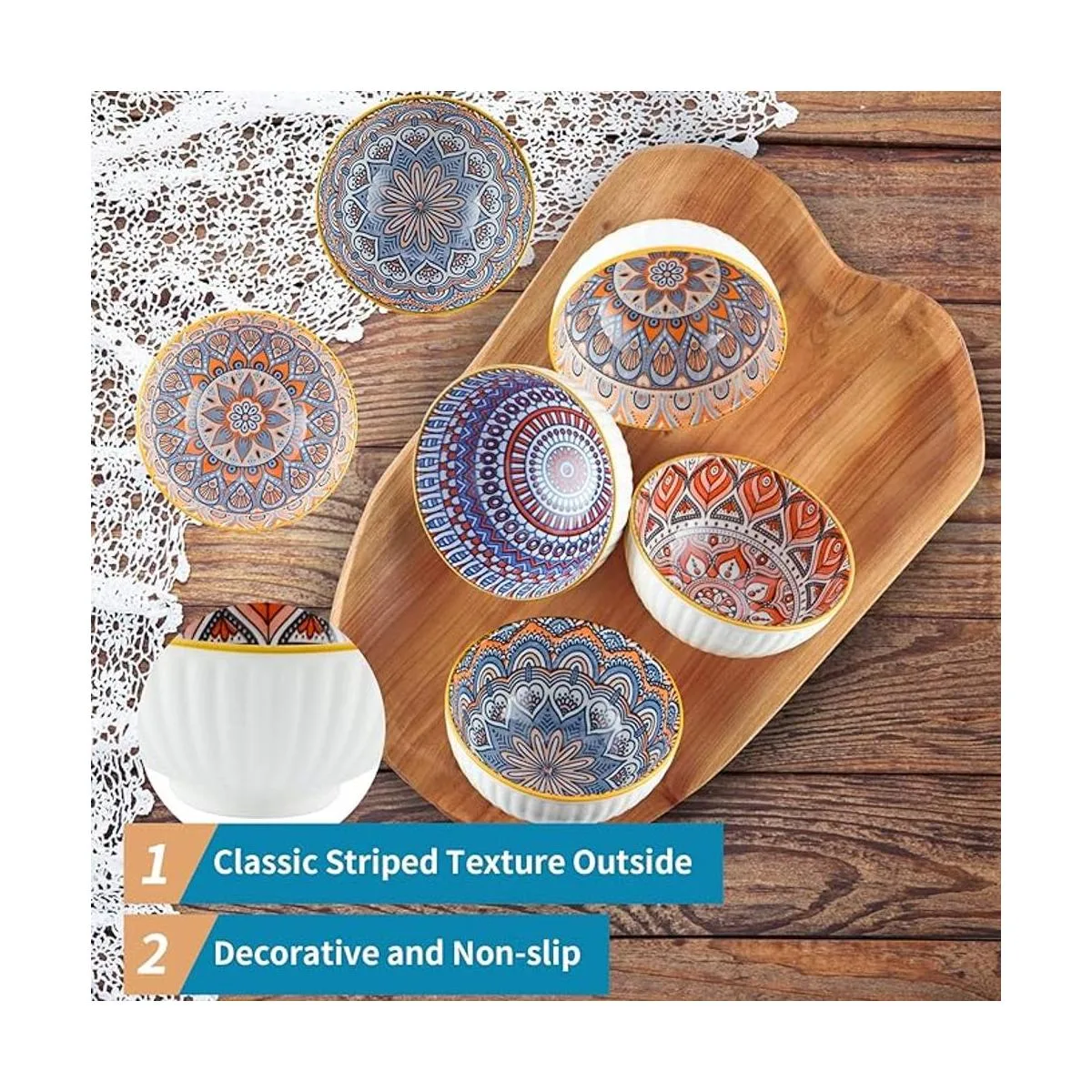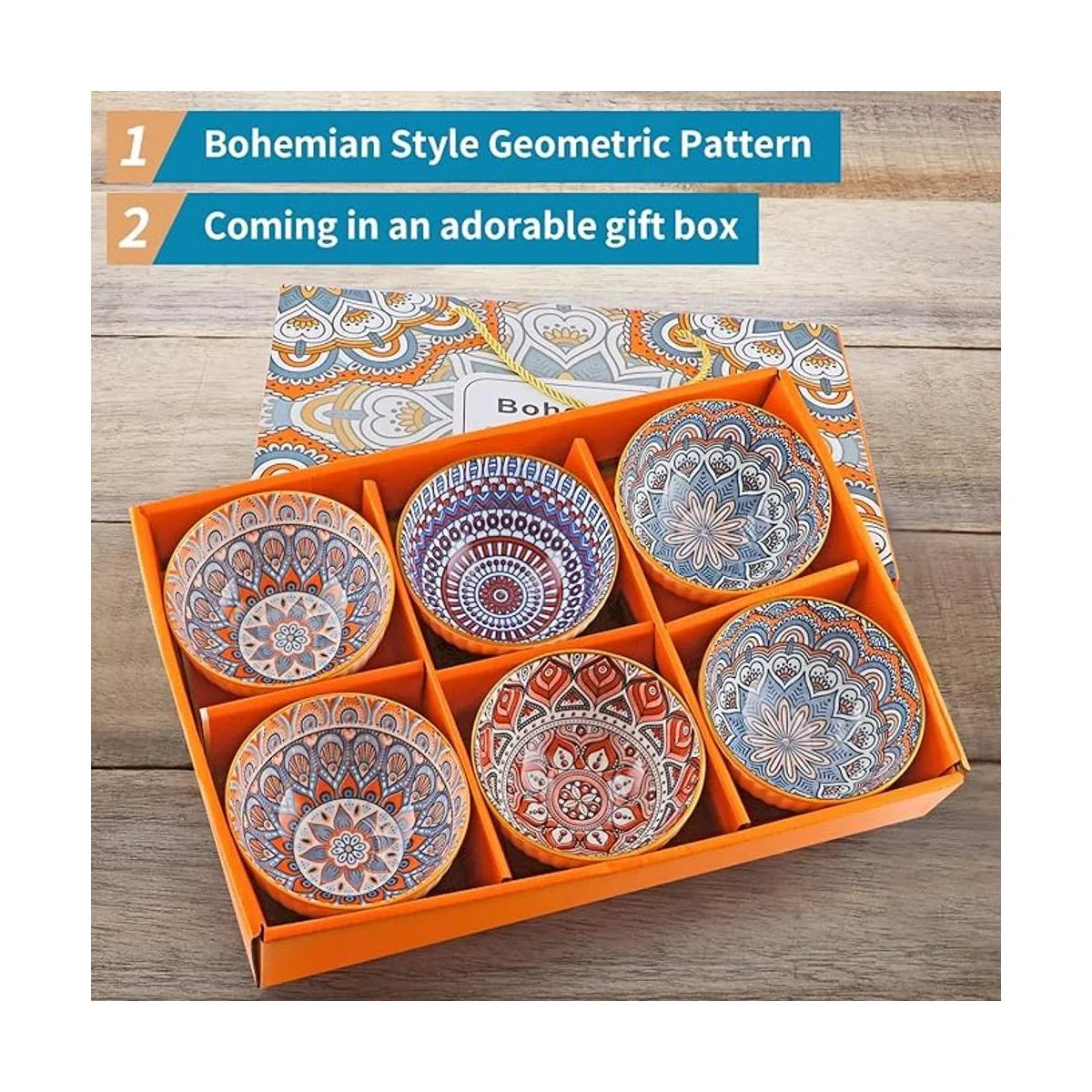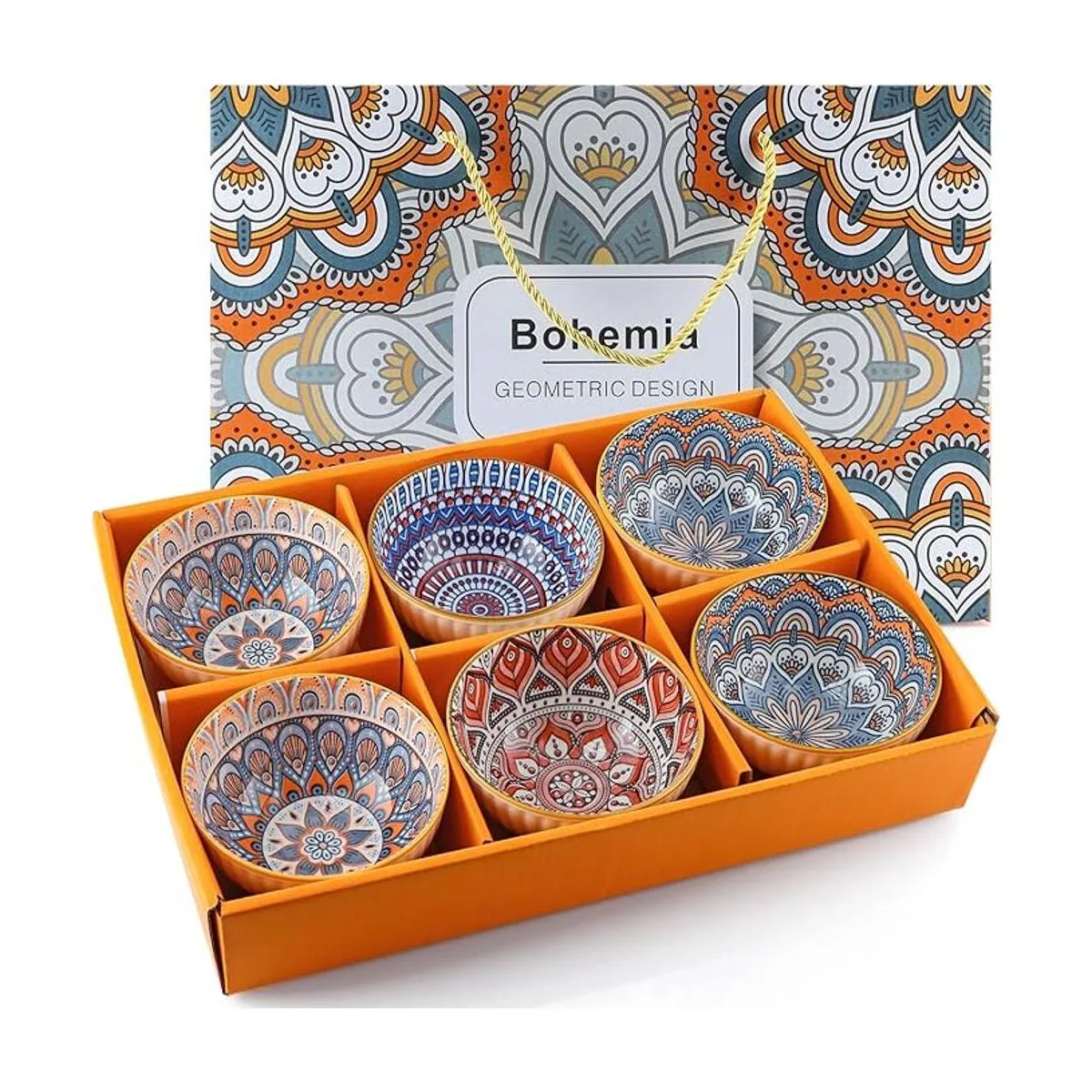 Sanbege Tazones de cerámica para arroz de 10 onzas, juego de regalo de cuenco de estilo bohemio, cuencos surtidos para cereales, sopa, postre, aperitivos, frutas, salsa, paquete de 6 patrón geométrico