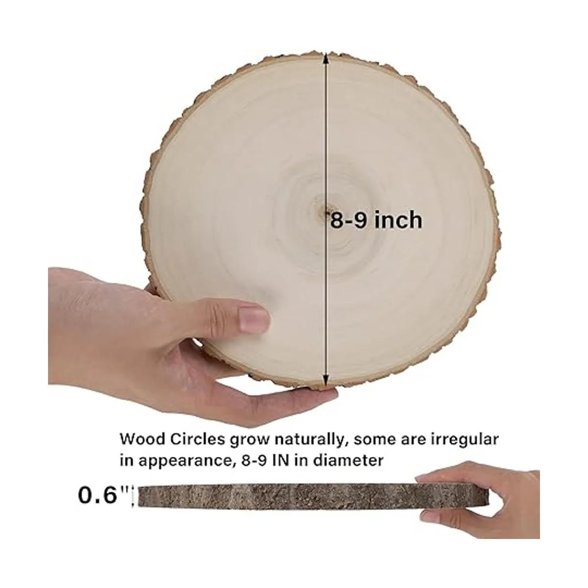 Rebanada de madera: nuestro círculo de madera sin terminar mide 8 a 9 pulgadas de diámetro y 0.6 pulgadas de grosor, ten en cuenta que las rodajas de madera natural pueden ser ligeramente diferentes en tamaño.