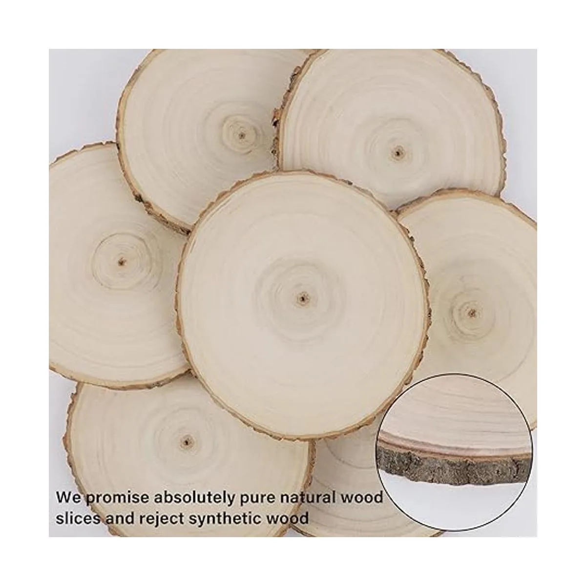 Círculos de madera natural: 8 rodajas de madera son naturales y la superficie es lisa, conserva la corteza del árbol y la textura anual del anillo del árbol, lo que hace que el círculo de madera sea más rústico.