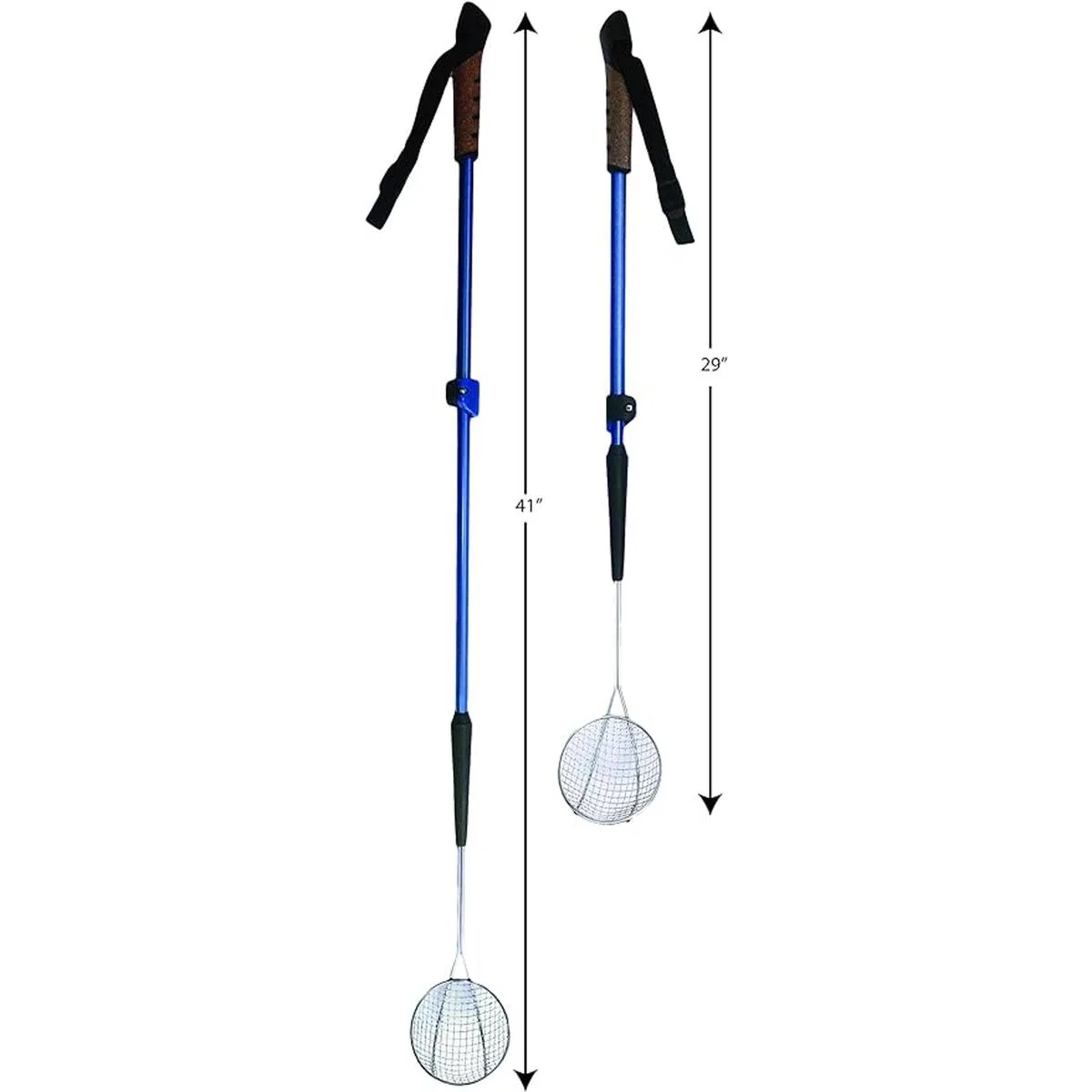 Materiales de calidad superior que significan una larga vida útil: canasta de acero inoxidable de grado marino, tecnología de poste de aluminio ligero pero fuerte, y mango de corcho seguro con bucle de muñeca para colgar fácilmente.