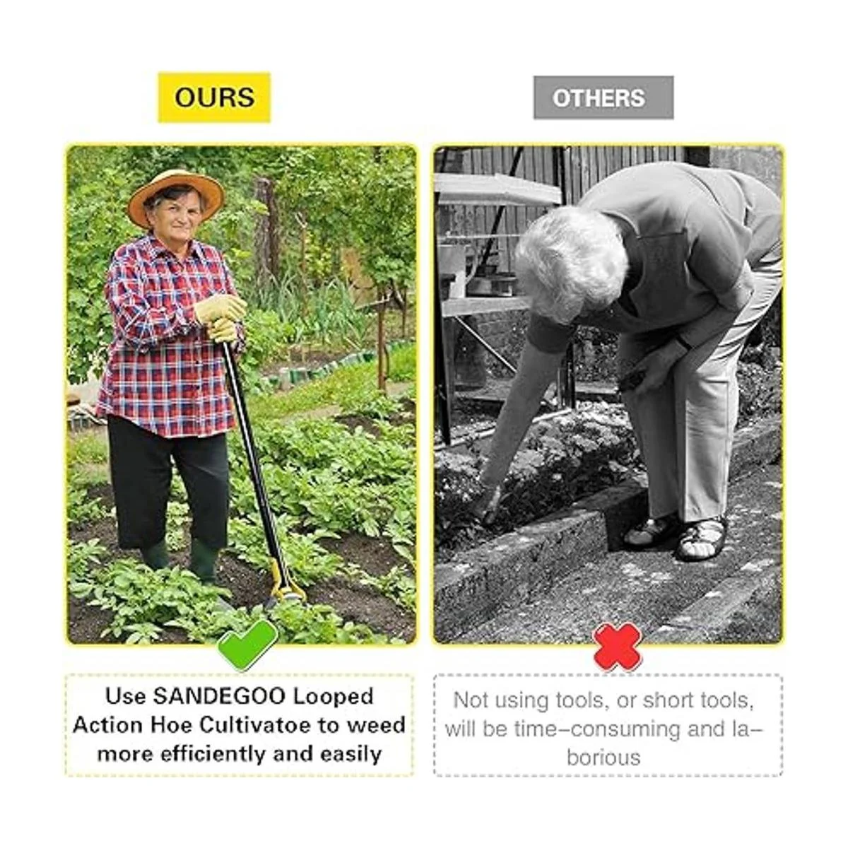 SANDEGOO Herramienta de azada de jardín, herramientas de deshierbe de 54 pulgadas para jardín, rastrillo de deshierbe de mano para plantar verduras, regalos de jardinería afilados y duraderos para herramientas de jardín de azada, proceso de forja de enfriamiento tradicional de acero