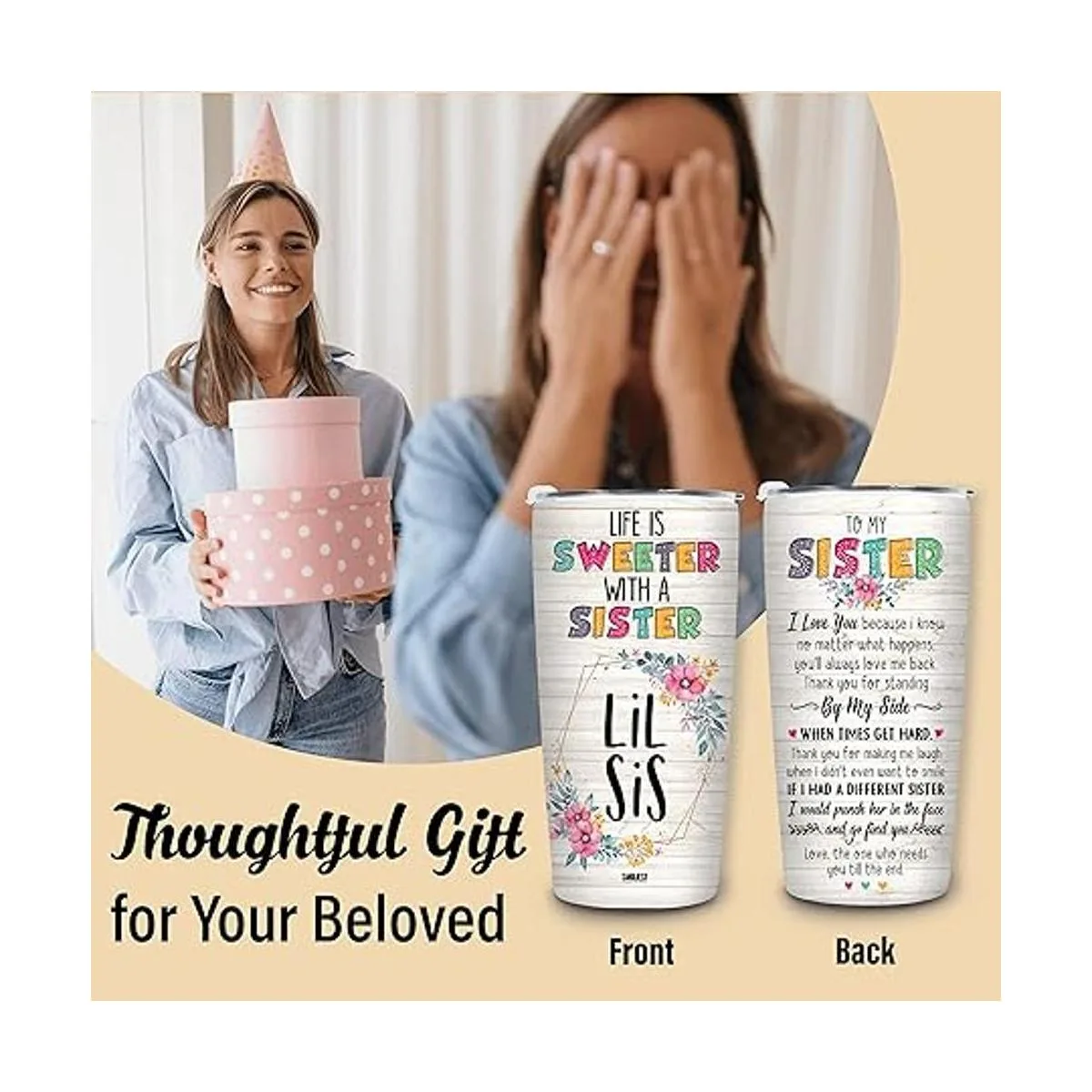 Gran regalo para hermana de hermana: los vasos Life is Sweeter with a Sister Lil Sis son regalos impresionantes para hermanas en su cumpleaños, Navidad, otras ocasiones.