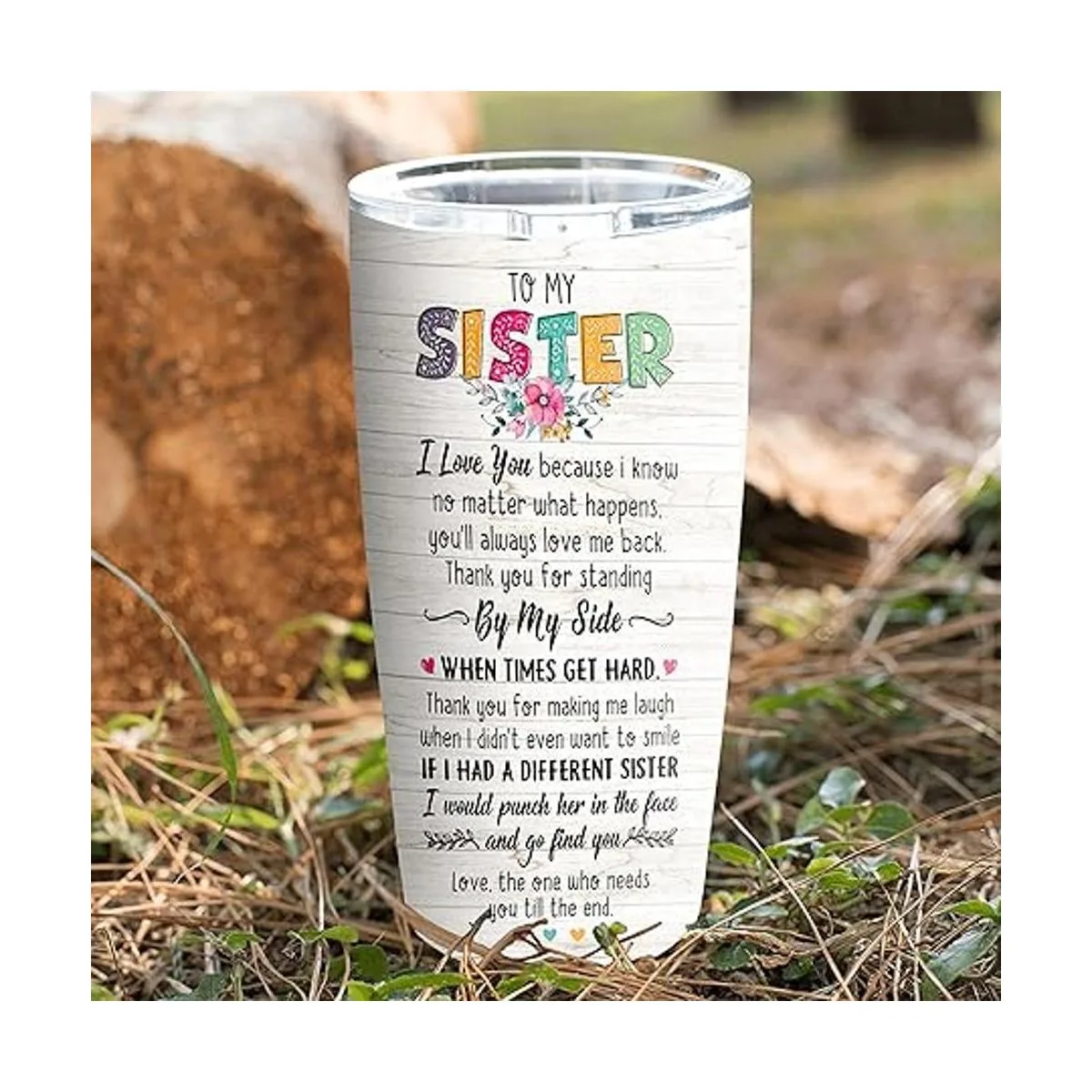 SANDJEST Regalos de cumpleaños para hermana de hermana Life is Sweeter with a Sister Lil Sister Taza de viaje aislada de acero inoxidable de 20 onzas para mariquita Vasos de Navidad regalos de hermanos y hermanas