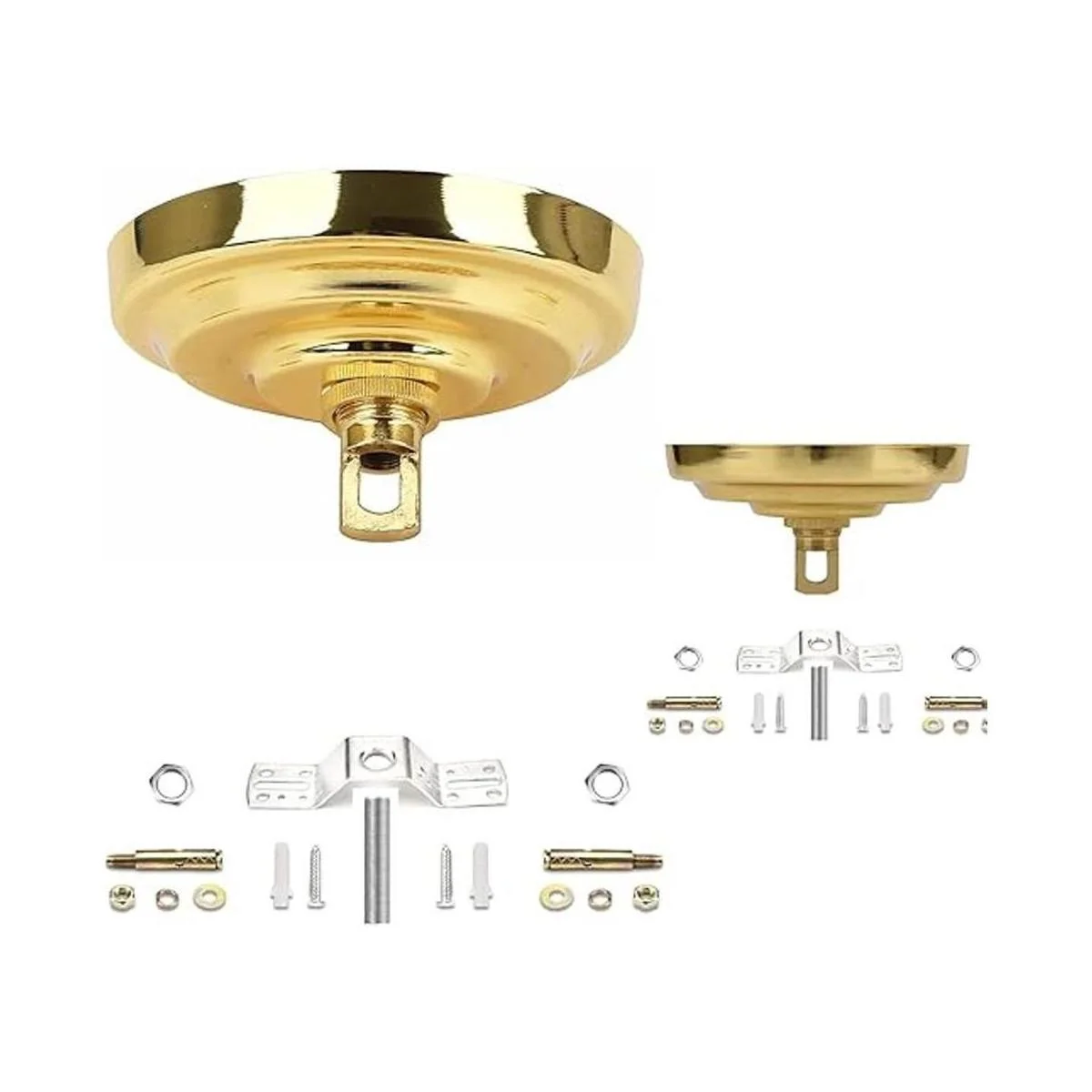 Sangle Soppfy Juego de 2 toldos de acero vintage con accesorios para lámparas de araña o swag, resistente, 5 pulgadas de diámetro, incluye bucle, barra transversal y tornillos de montaje oro puro, juego de 2 unidades