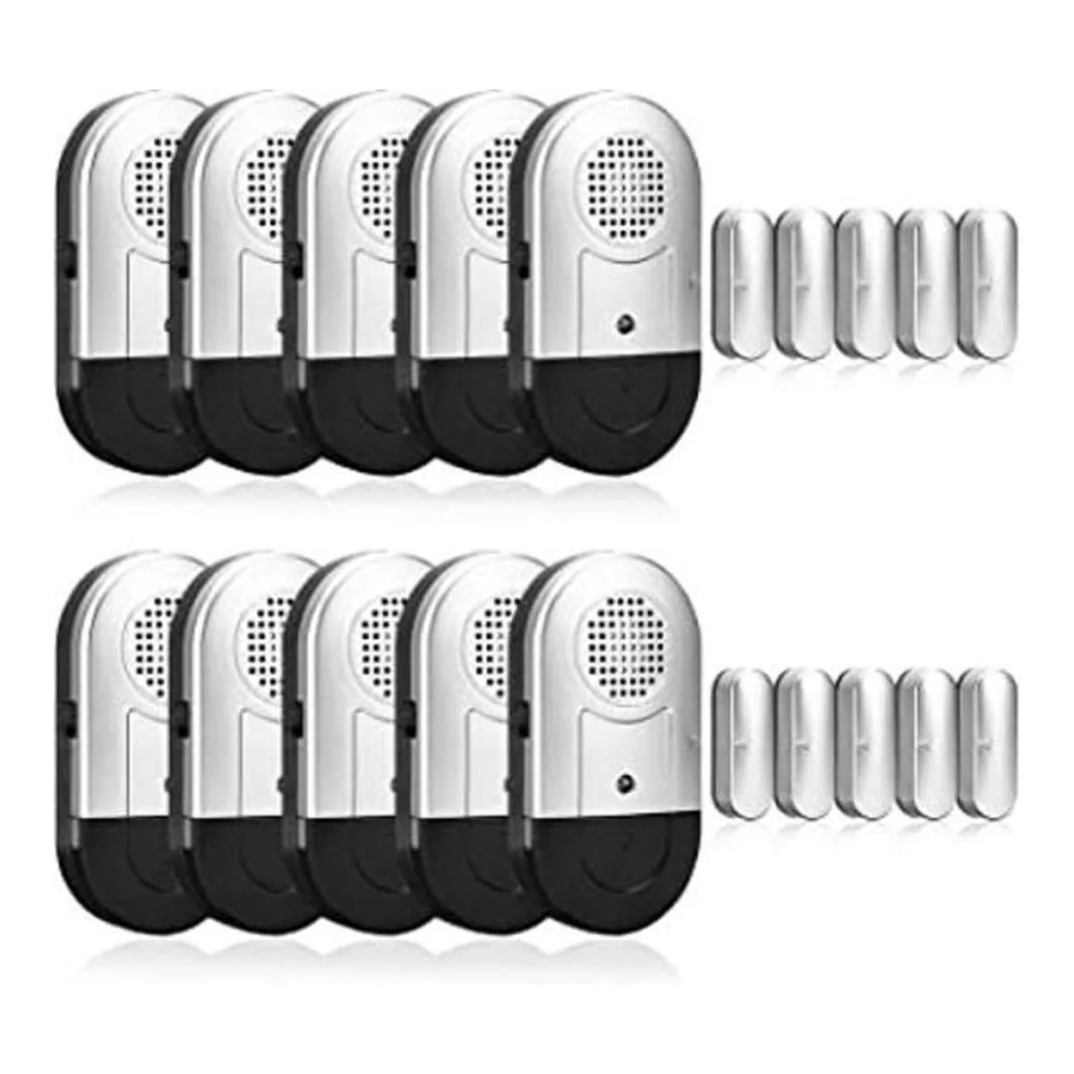 SANJIE Alarma de puerta para el hogar, alarmas inalámbricas de puerta para niños, seguridad con 120 dB, sensor de alarma abierto para demencia, seguridad de pacientes, piscina, plata, paquete de 10 sensores magnéticos