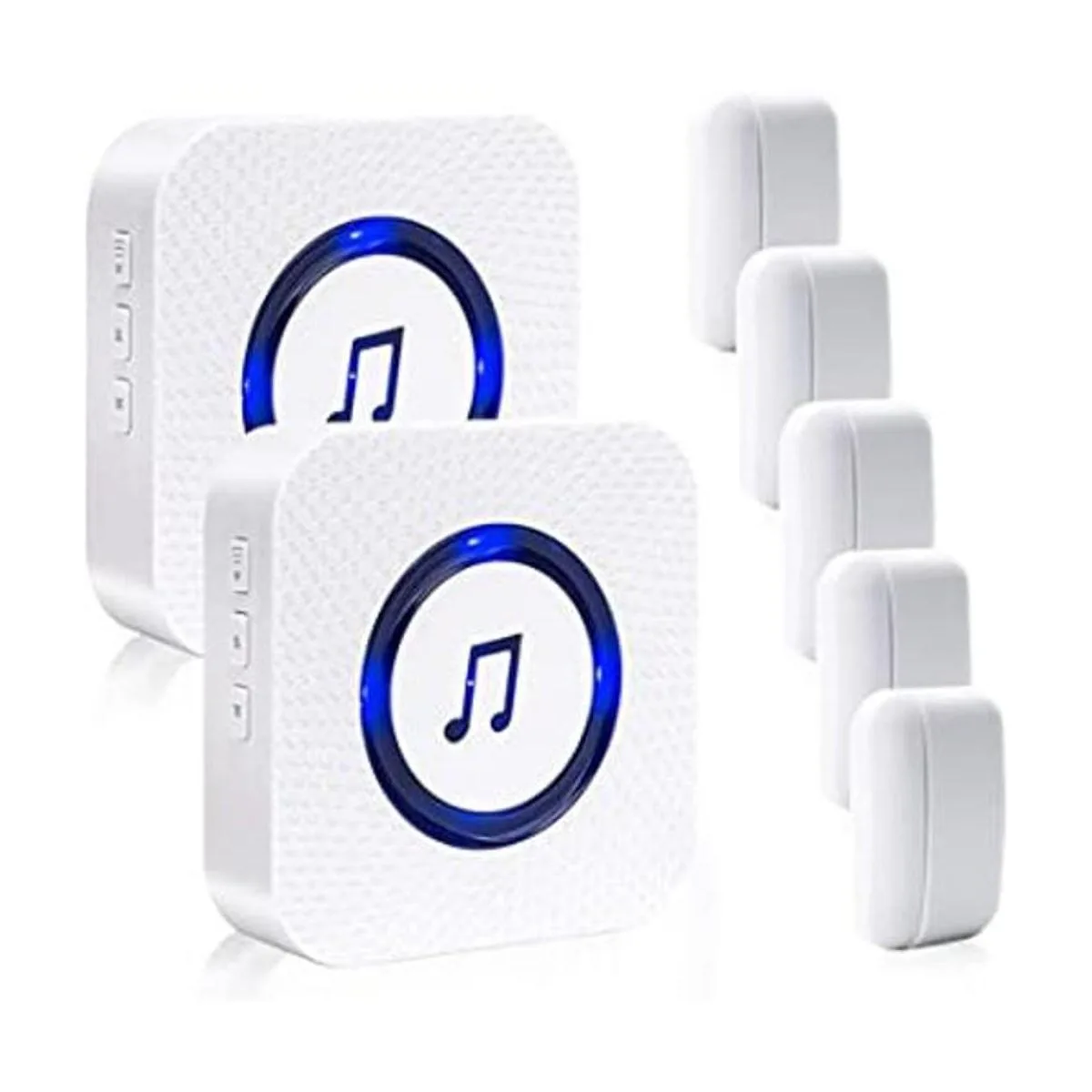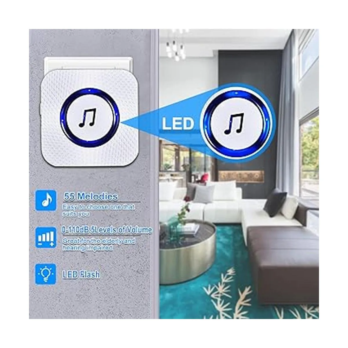 55 melodías y 5 volumen: la alarma de puerta con timbre cuenta con 15 timbres y 40 campanillas de melodía y 5 niveles de volumen ajustable 0 dB de silencio a 110 dB de sonido fuerte para ajustar, perfecto para su uso diario solo uso en interiores. Los indicadores LED son adecuados para personas mayores con discapacidad auditiva. Función de memoria: mantén la afinación anterior después de volver a conectarla