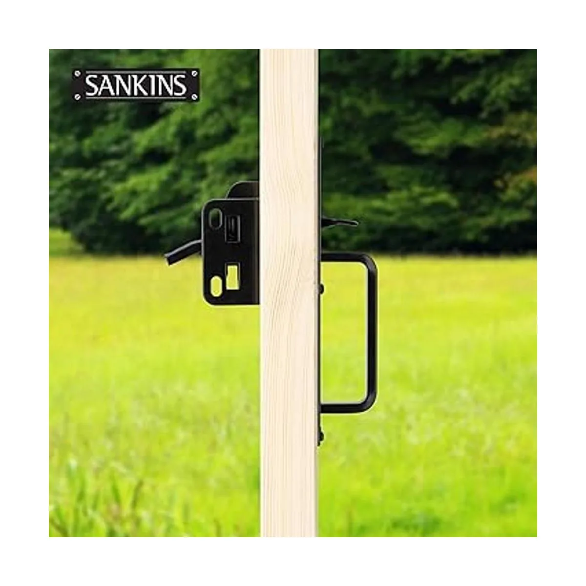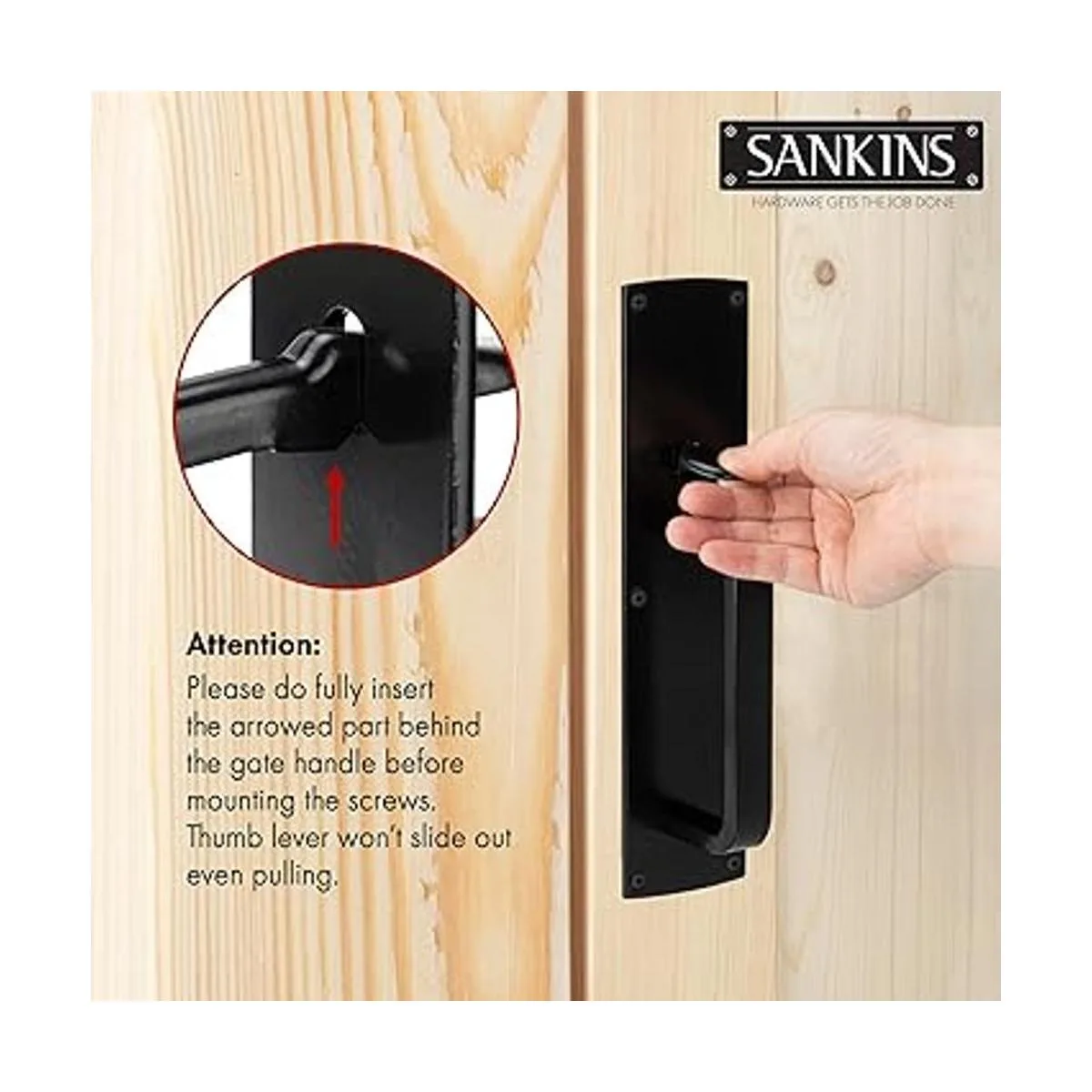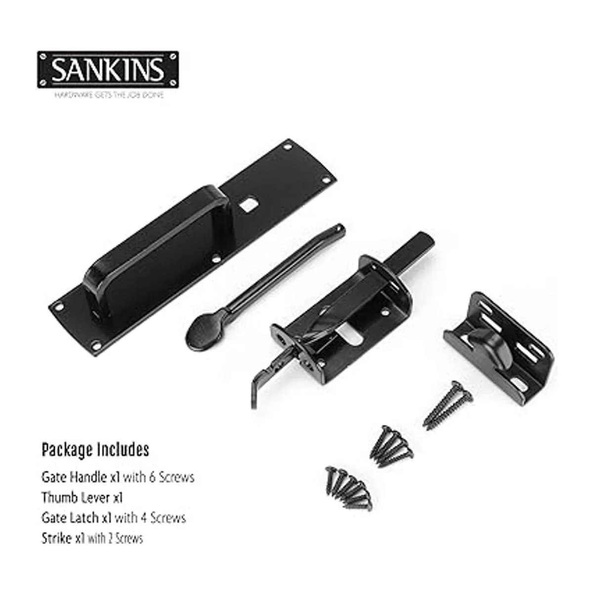SANKINS Hardware de pestillo para puerta de pulgar para valla de madera resistente, kit de pestillo de valla autobloqueante con asa, kit de bloqueo de puerta para valla de maderavinilo, puerta de metal al aire libre, acabado negro