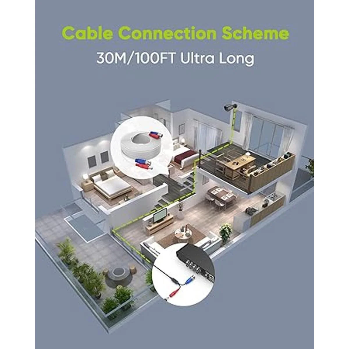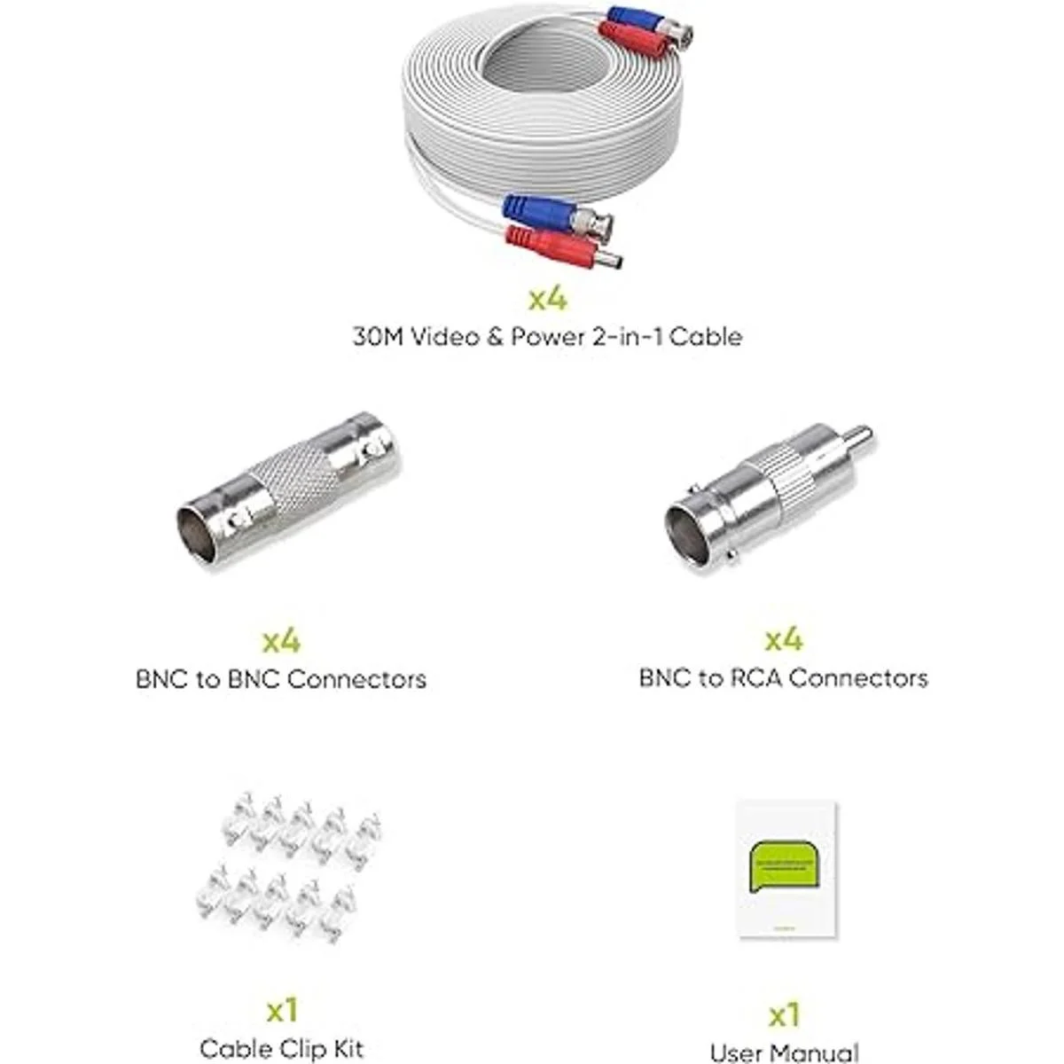 SANNCE 4 Pack 100 ft pies Video Cables de alimentación premade AllinOne cámara de seguridad Extension Cables Cuerdas para CCTV DVR Home sistema de vigilancia, X1813W kitsCA
