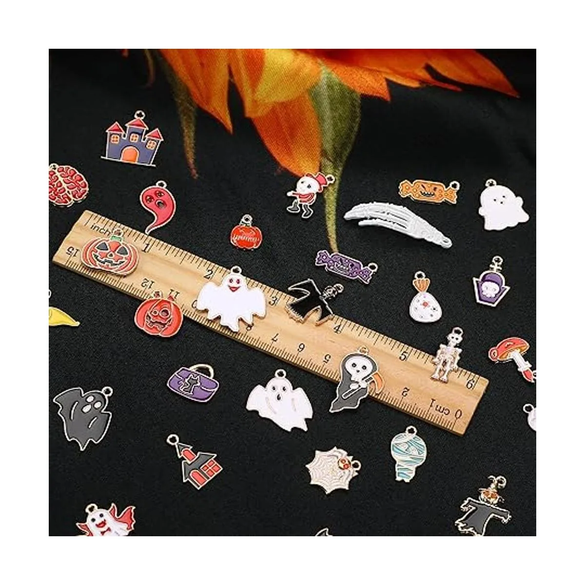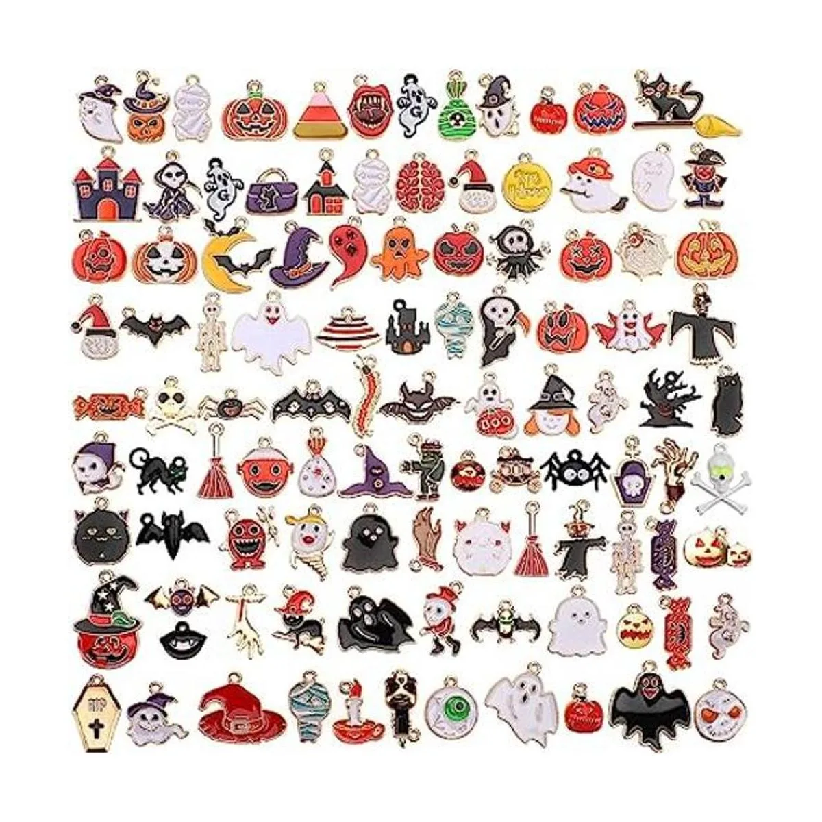SANNIX 110 dijes de Halloween esmaltados dorados para hacer joyas de Halloween, pulseras y collares