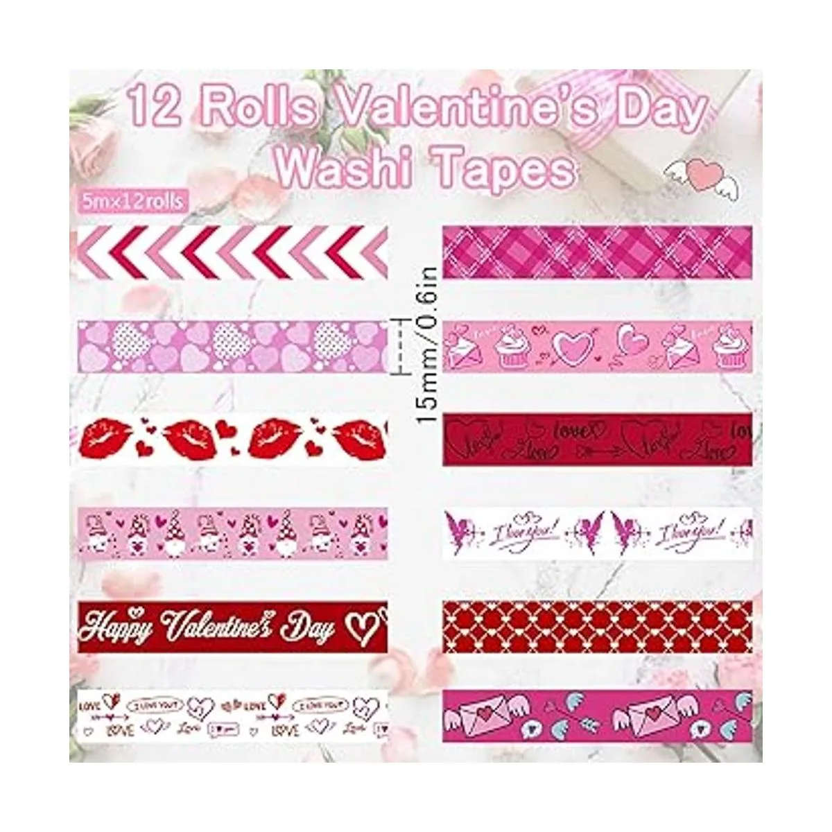 Juego de cintas washi de San Valentín: recibirás 12 rollos de cintas washi para el día de San Valentín con un diseño exquisito y lindo. La cinta washi de San Valentín es una opción ideal para hacer manualidades de San Valentín o decoración de regalos, añadiendo un ambiente romántico para el día de San Valentín