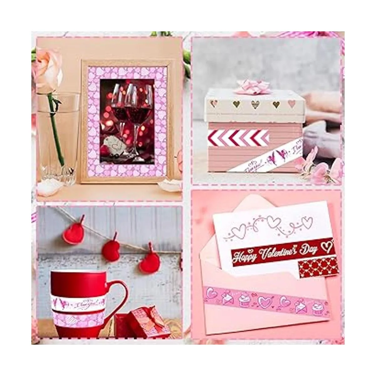 Tamaño adecuado: cada rollo de cinta washi de San Valentín mide 0.591 in de ancho y 16.4 ft de largo, con la longitud total de 196.8 pulgadas. Los patrones ricos y las cantidades suficientes pueden cubrir tus necesidades decorativas en el día de San Valentín. Puedes cortar cualquier longitud según sea necesario