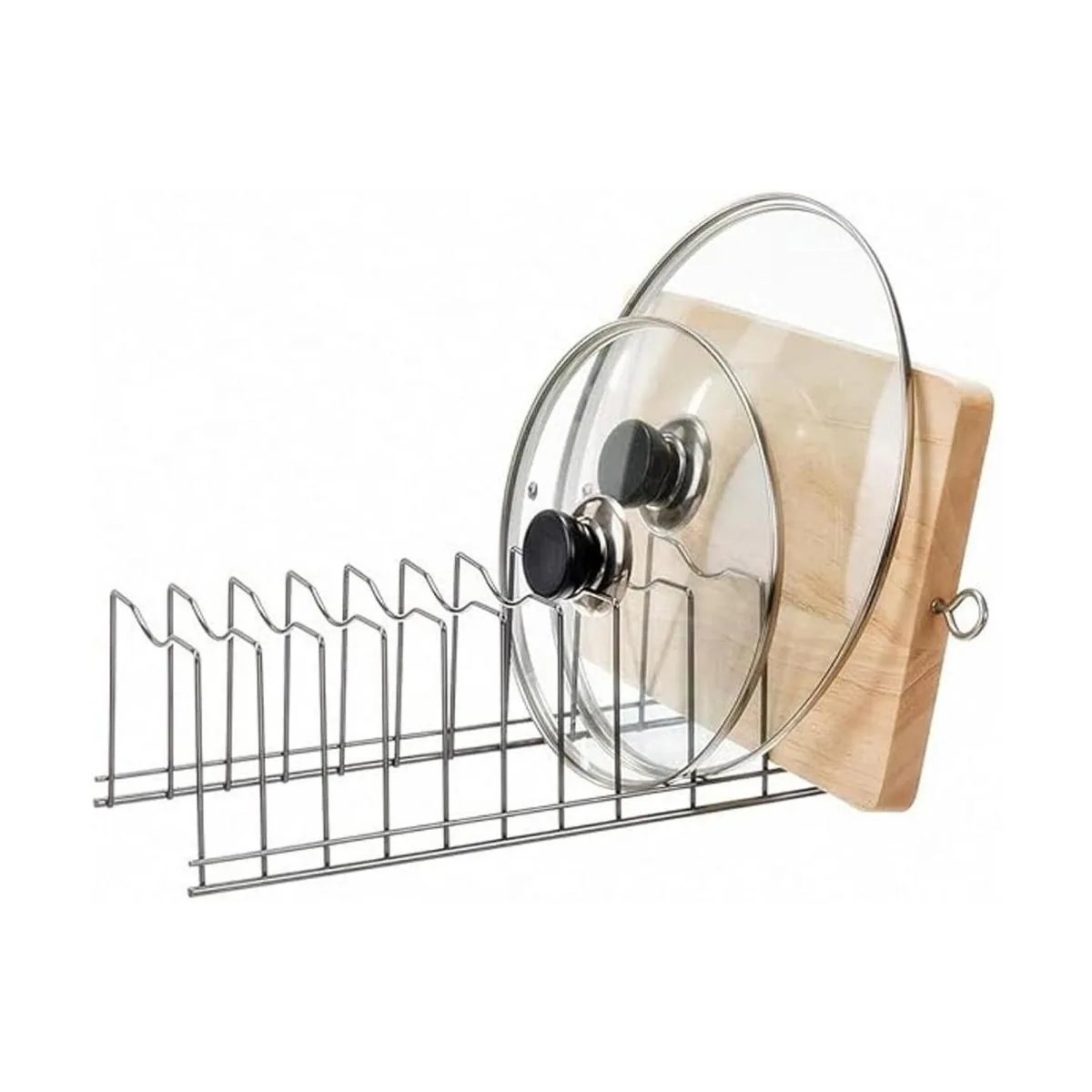 SANNO Organizador de tapa de olla, soporte para tapa, organizador de platos de cajón para utensilios de hornear, tablas de cortar, ollas y sartenes, bandejas de servir, recipientes reutilizables en despensa de gabinete